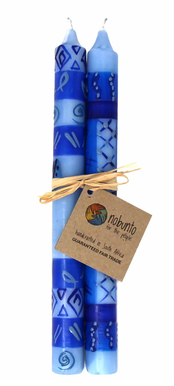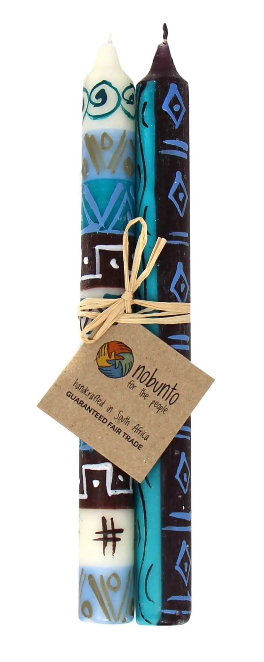 These globally-inspired hand-painted candles are small works of art. Crafted by artisans in South Africa, each candle is hand-poured and then individually hand-painted. Each design name is derived from a special African word that is brought to life through the color and patterns which reflect the culture and influences of South Africa. The style images pictured illustrate the general design, but note that each candle is one of a kind.  A truly unique and beautiful gift for hostesses, housewarming, wedding, anniversary, and more that make a striking addition to every home and a beautiful conversation piece!