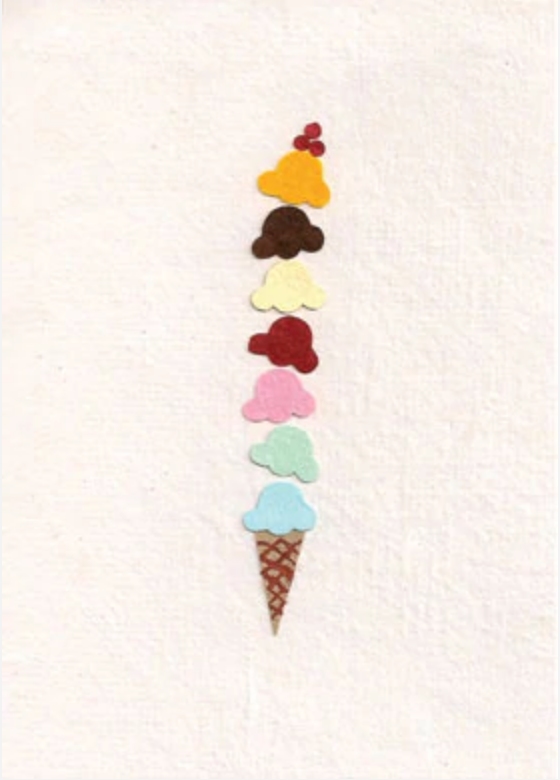 Our “Yummy Ice Cream” card is lovingly handcrafted in Rwanda by young people who have been orphaned by genocide or disease. All the paper is handmade from local Rwandan office waste, making it environmentally sustainable, too. Envelope included.
