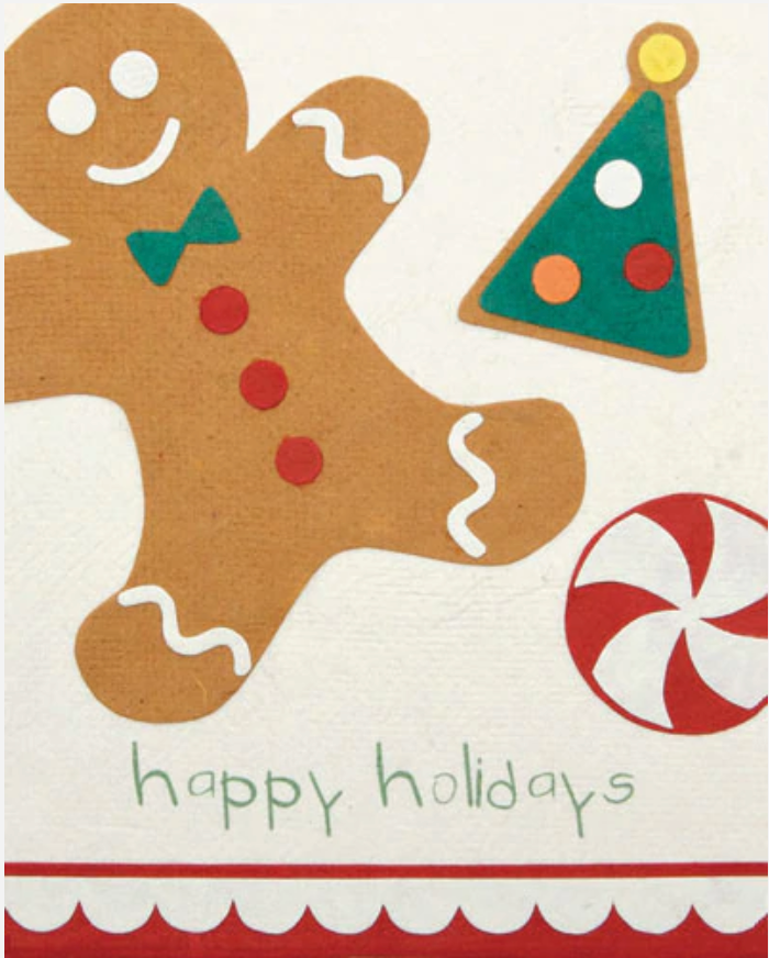 Our “Holiday Treats” card is lovingly handcrafted in the Philippines by women survivors of sex trafficking. The card incorporates a variety of handmade, recycled papers, making it environmentally sustainable, too. Envelope included.