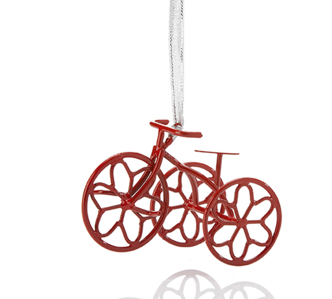 Perfect for the bicyclist or the child-at-heart, this tricycle ornament brings whimsy and fun to your holiday tree. Crafted from new and recycled iron with silver ribbon for hanging. Dimensions: 2 3/4"h.