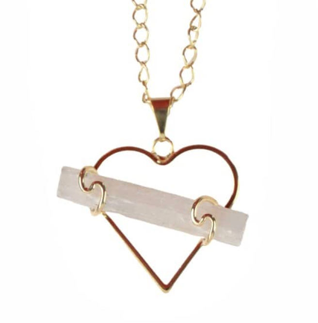 Stunning heart pendant accented with a crystal 1.5"L piece in a 22" chain. Available in gold. Made in Brazil.