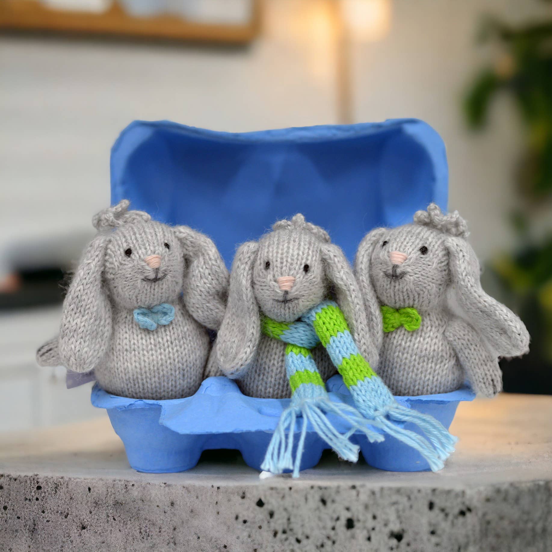 Each bunny sports its own unique accessory—from bright bows and dainty flowers, to colorful scarves, adding a playful personality to each bunny. Perfect for springtime or everyday décor, these sweet, soft critters bring a cozy, handcrafted feel wherever they’re displayed. Ornaments are priced and sold individually. Photographs show all of the colors/variations that may be available. 4" tall Exterior: 35% alpaca, 15% wool, 50% acrylic. Filling: 100% polyester Spot clean Handmade, fairly traded Our whimsical designs are handmade by knitting artisans in Lima and in remote rural villages in Peru. We work closely with organizations dedicated to empowering women through income generating projects. They enjoy a safe work environment and earn a living wage with a respect for their cultural traditions.