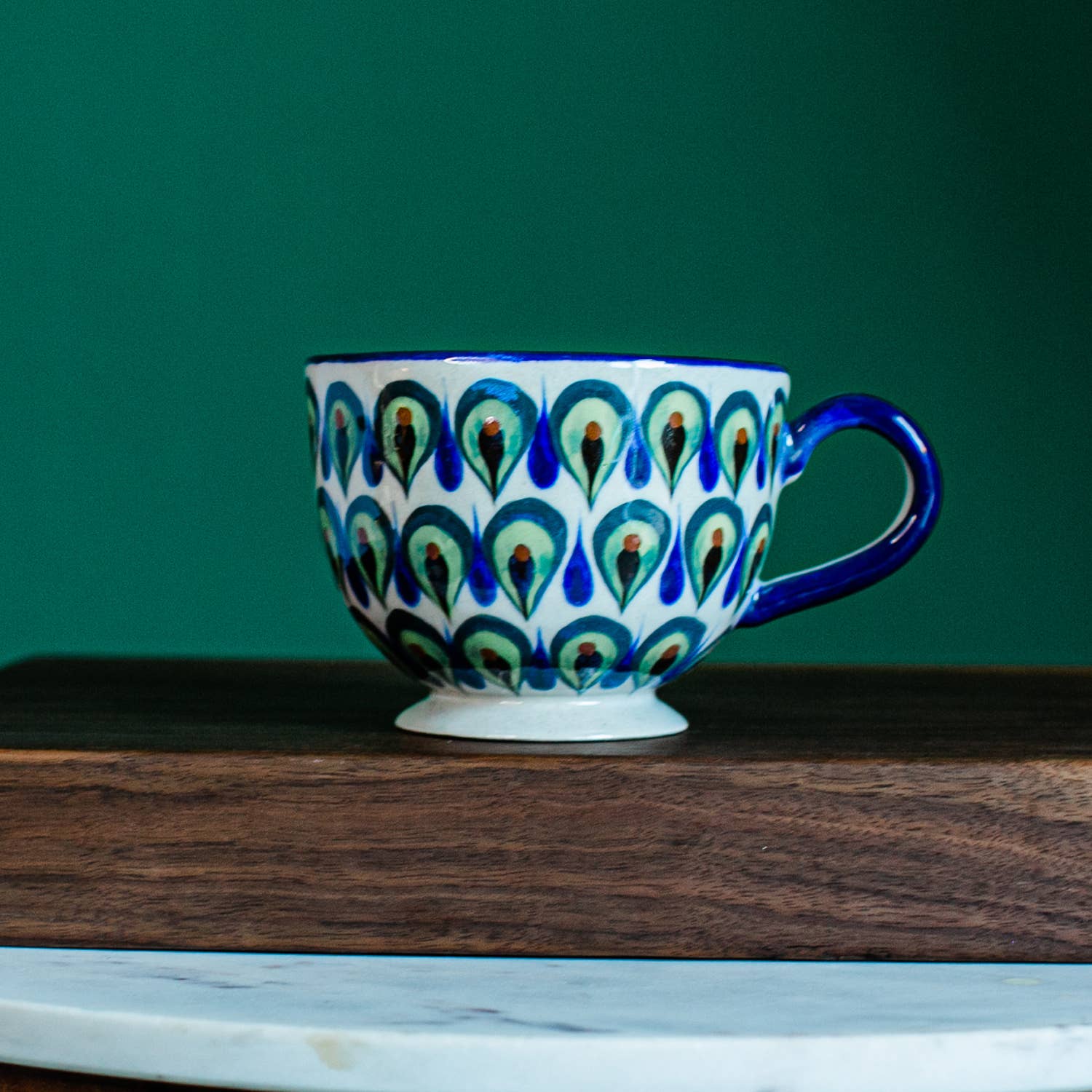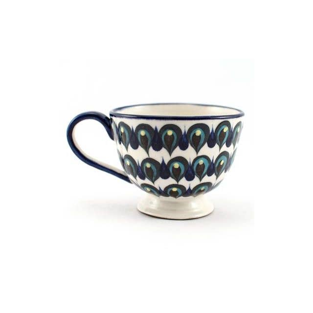 Enjoy a nice warm cup of your favorite soup or coffee! Handmade Cappuccino or Soup Cup~ 3.5 by 4.5 inches wide ~Holds 12 oz. Microwave and dishwasher safe with lead free paint.