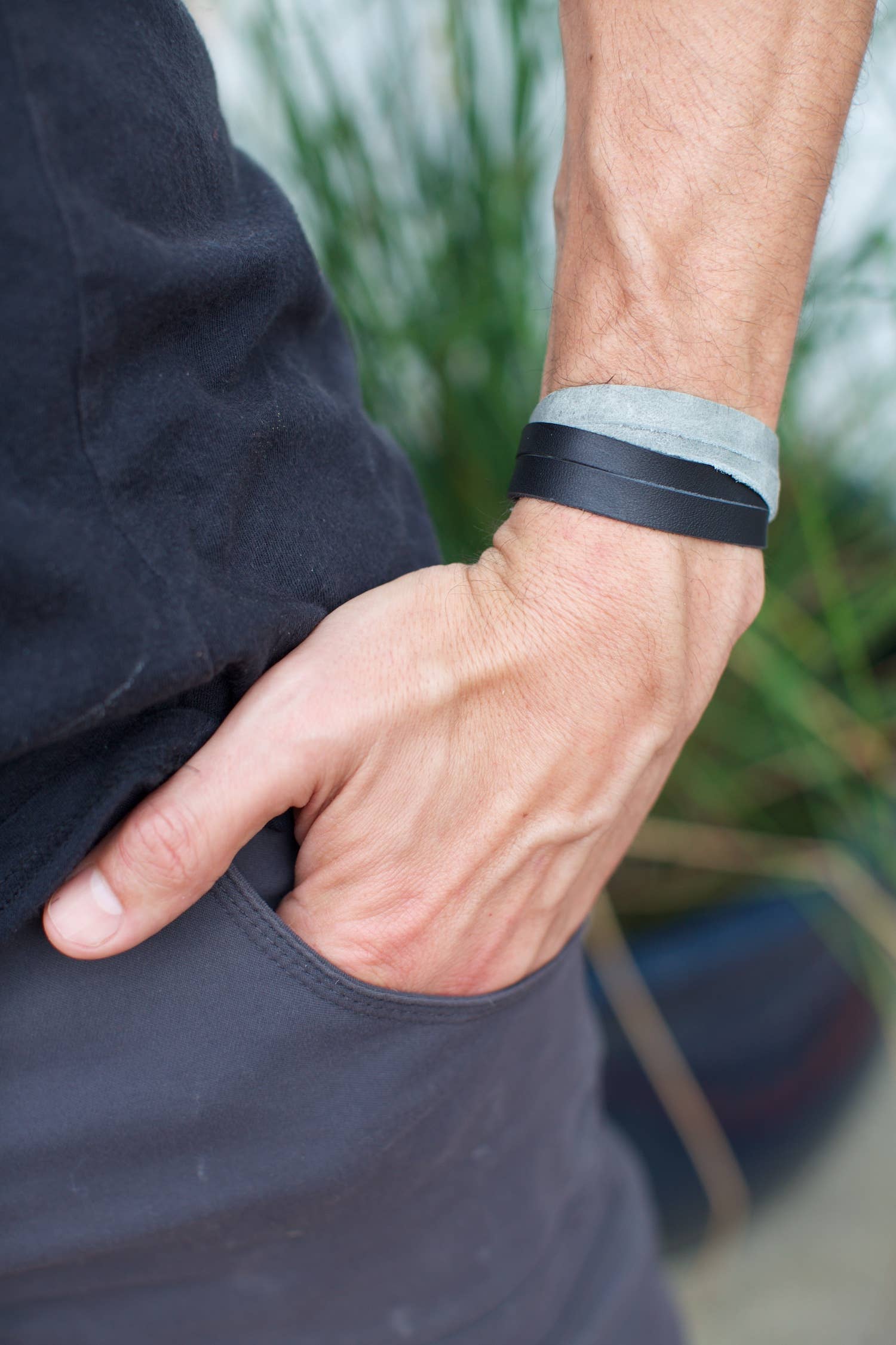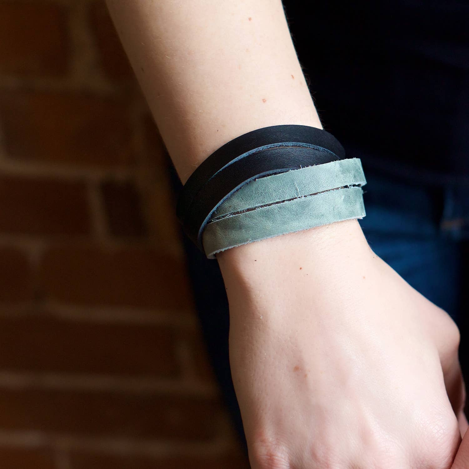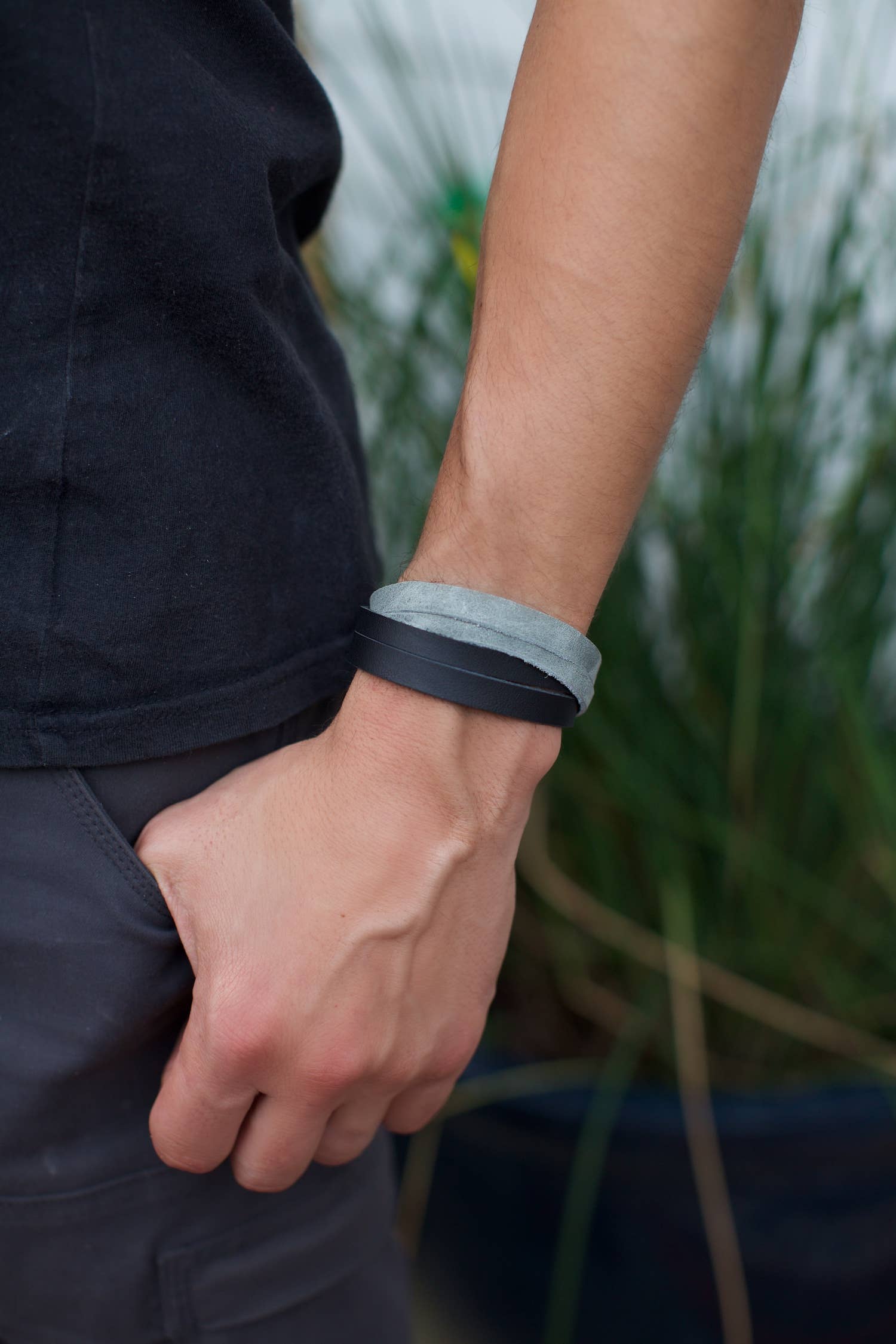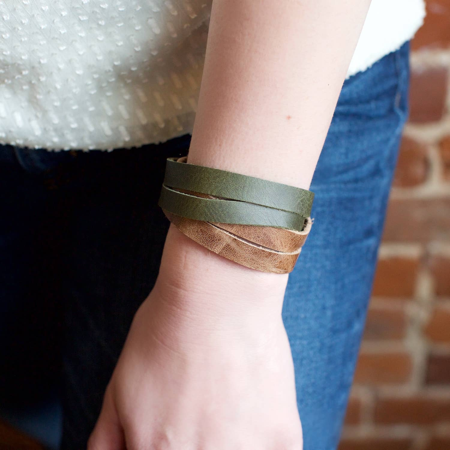 This fair trade Two Tone Leather Bracelet features a criss cross straps and two snaps for adjustment. This is the perfect accessory for both men and women. Each purchase empowers artisans...