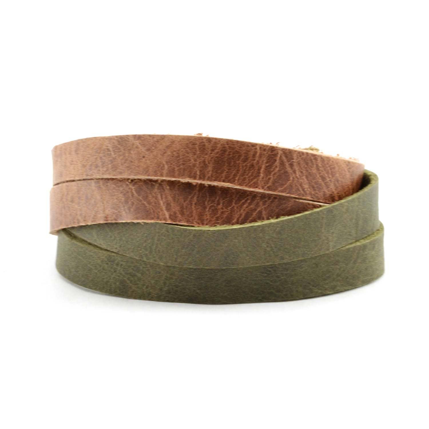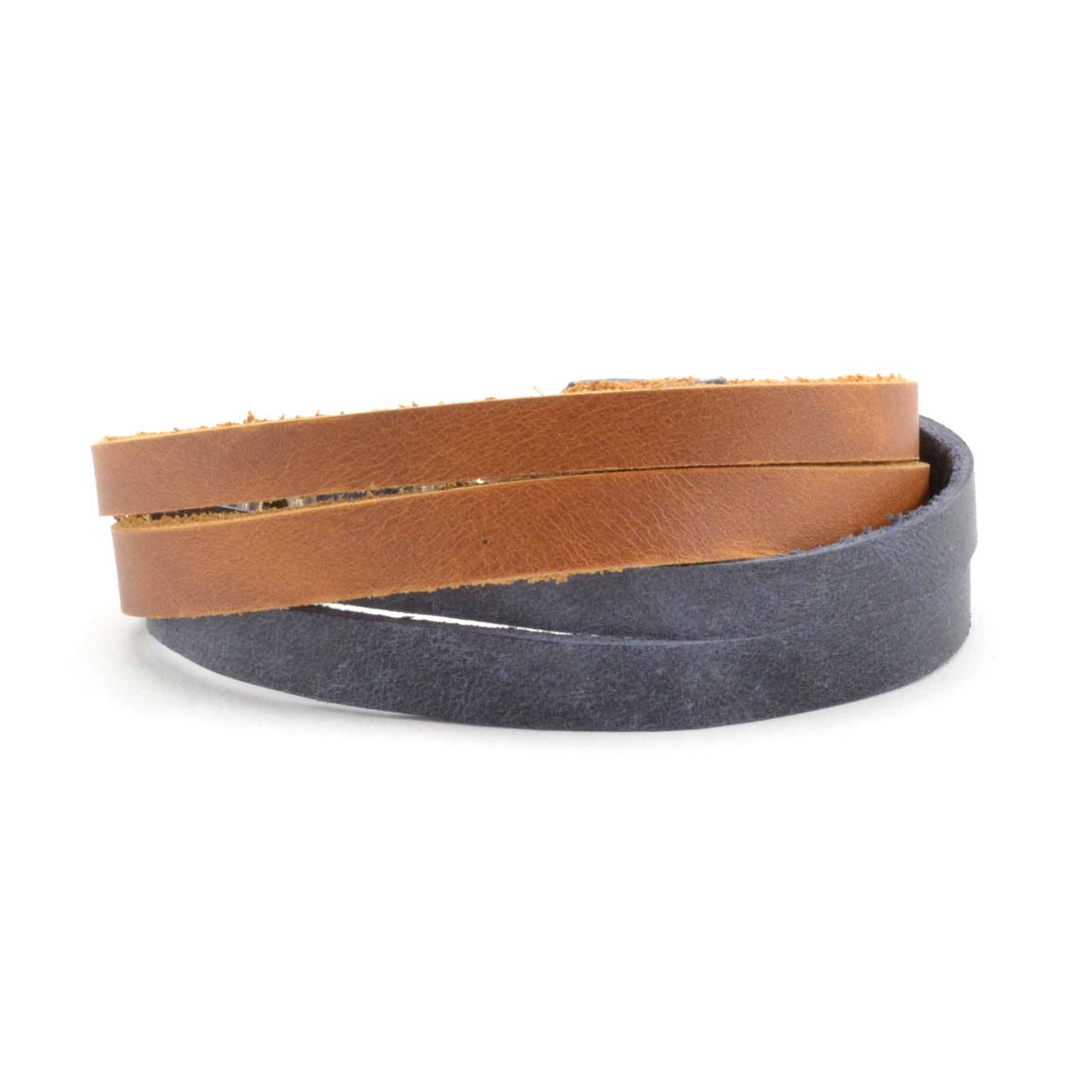 This fair trade Two Tone Leather Bracelet features a criss cross straps and two snaps for adjustment. This is the perfect accessory for both men and women. Each purchase empowers artisans in Guatemala.