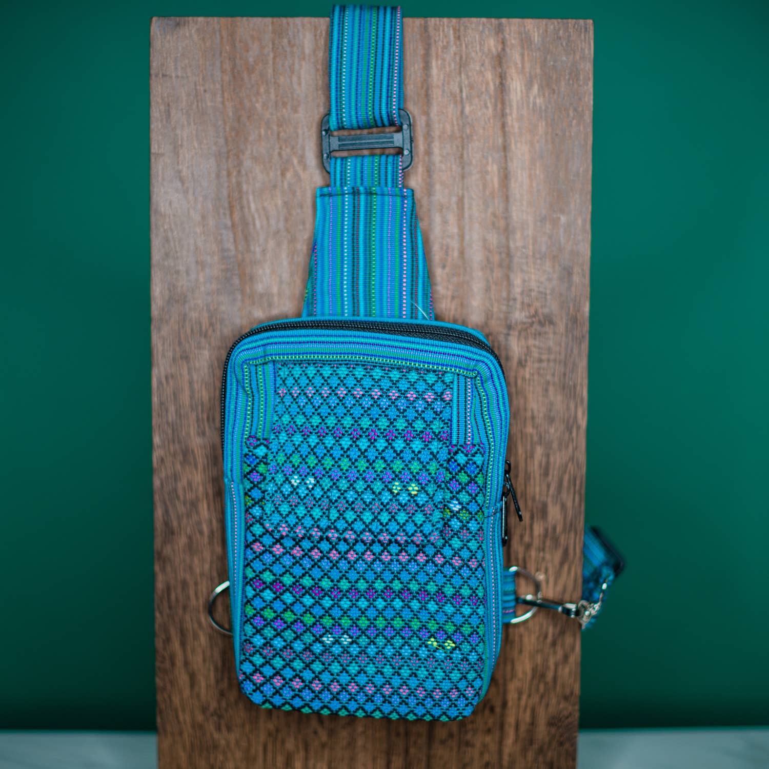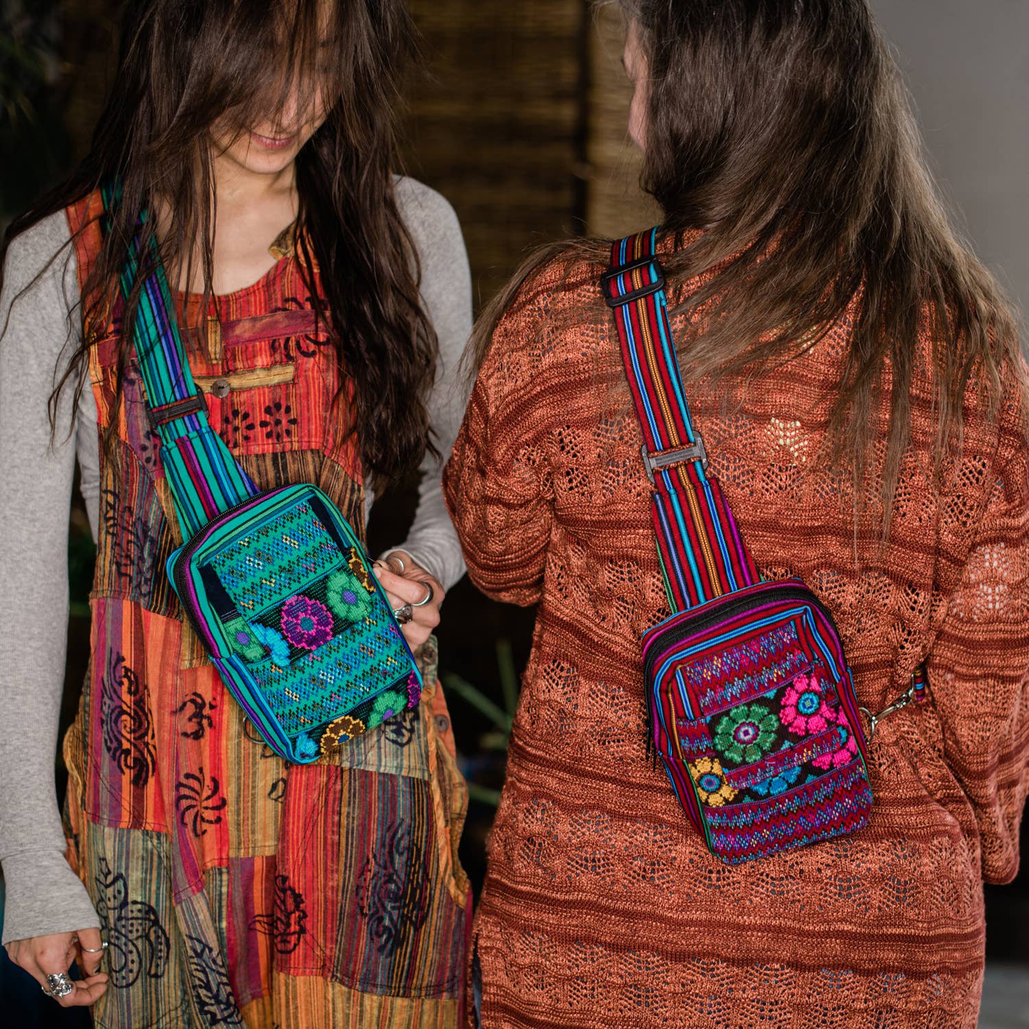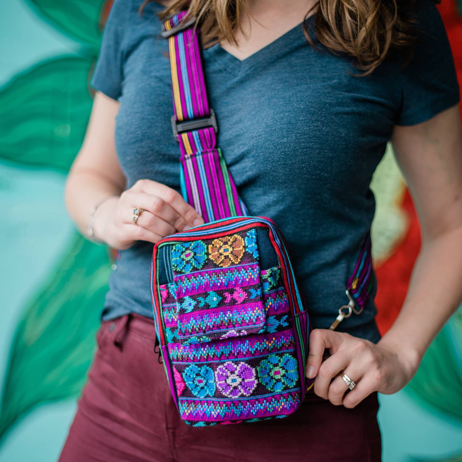 The Explorer Bag is a versatile crossbody you can wear in the front or the back. Whether you are going to festivals, the store, or your every day errands, this bag offers hands free for an easy, yet unique look. Bag measures 7.5" L x 5.5" W with front velcro pocket, zipper closure with inside pocket, and back zipper. Handmade materials are cotton with a synthetic lining. Strap is adjustable at 23" longest. Fabric comes in assorted colors and designs. Each purchase empowers Artisans in Guatemala!