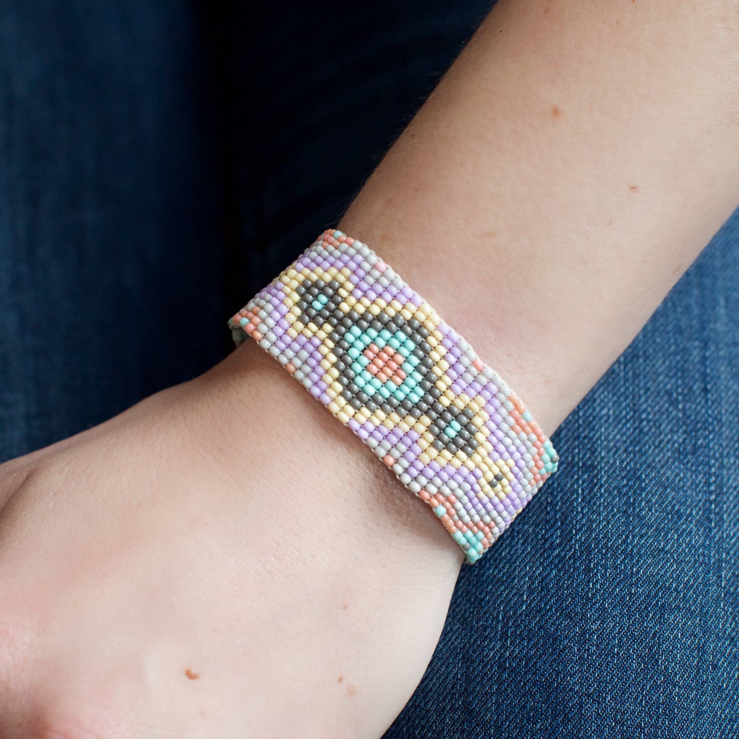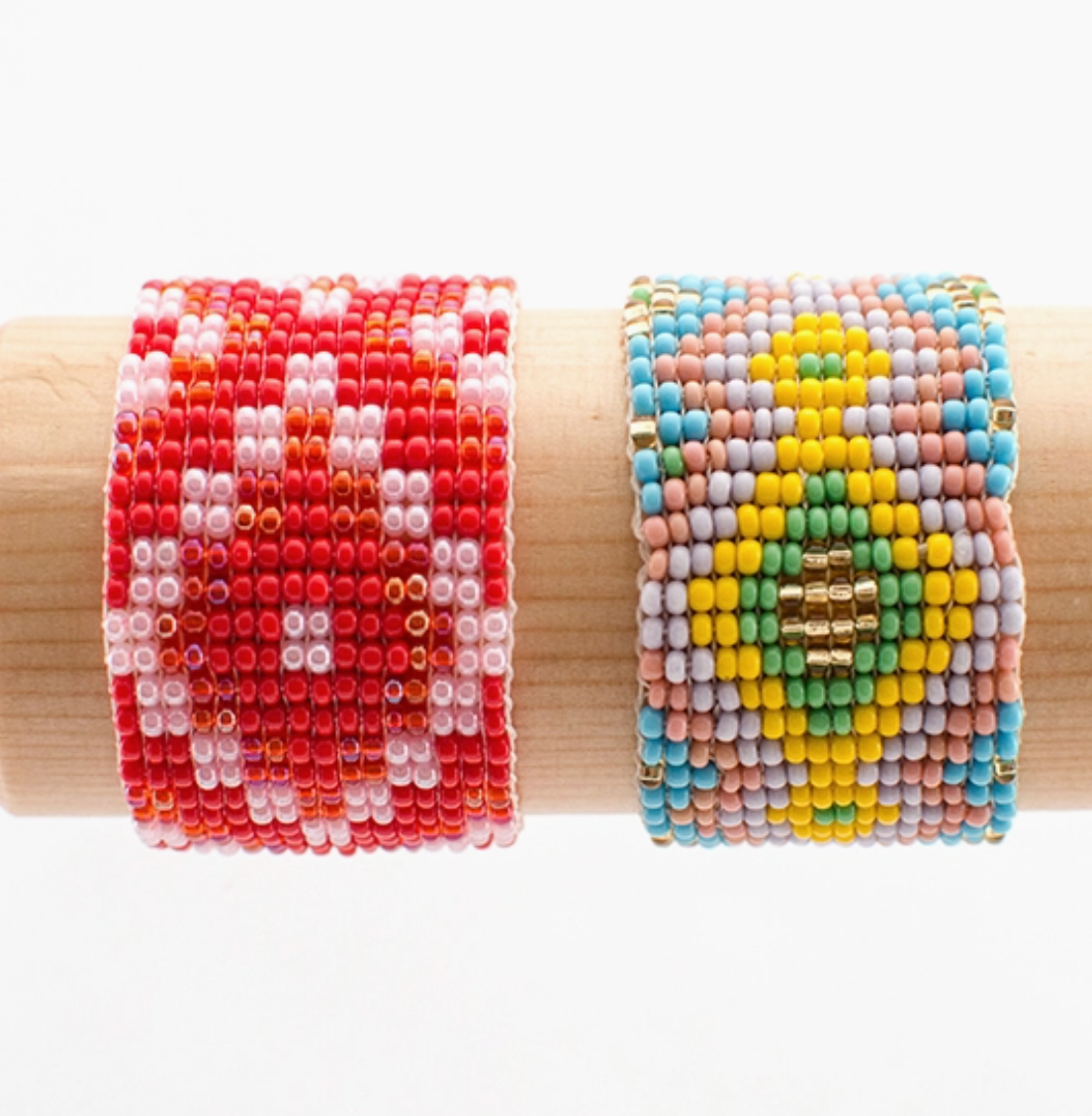 16 rows of beautiful glass beads hand made by Guatemalan artisans. Comes in assorted colors and designs. Measures approximately 7" x 1".