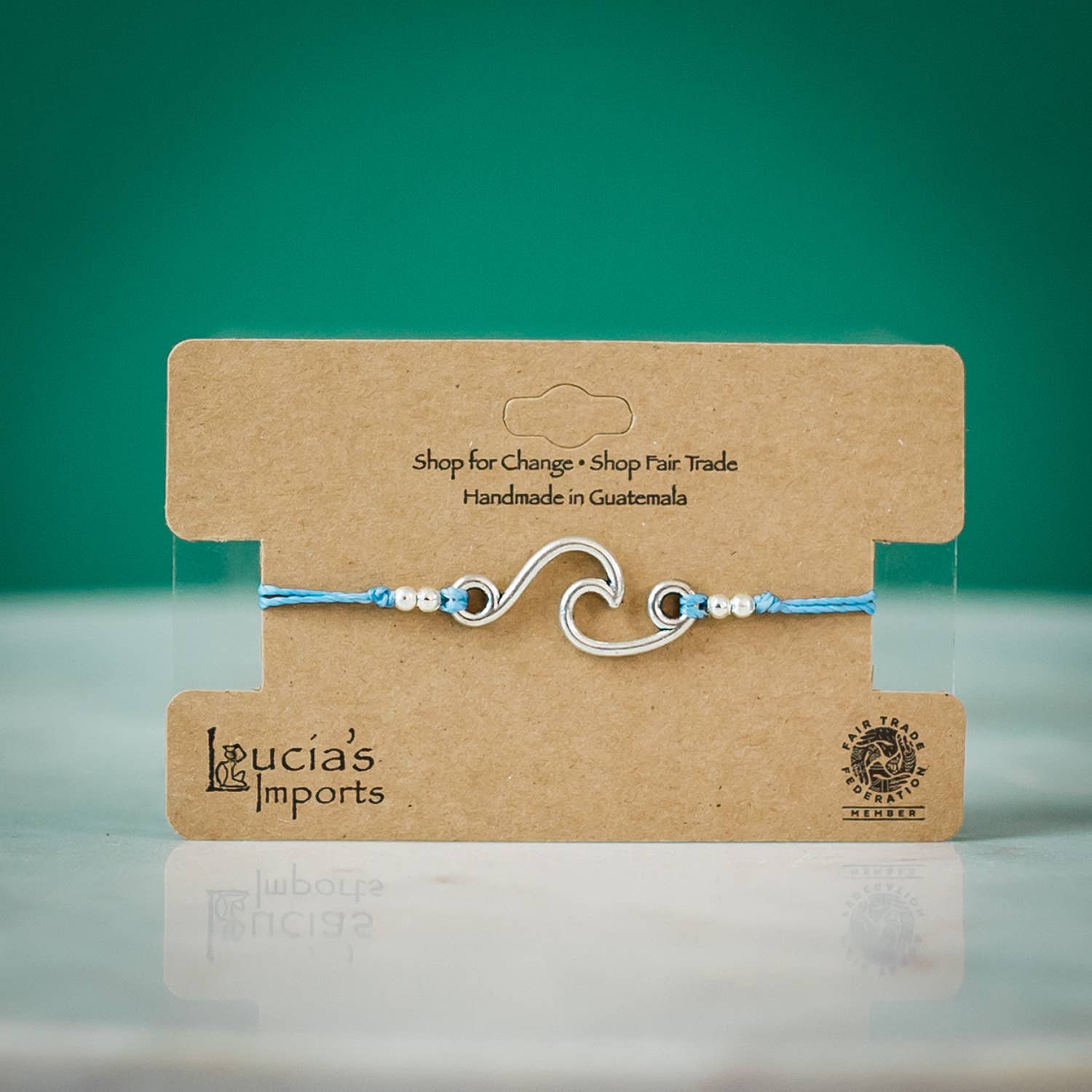 This fair trade Wave String Bracelet is made from colorful string with a silver metallic wave bead at the center. Each bracelet features a pull string slip knot closure to make them easy to wear. Stack them or wear it separately. Comes in assorted colors. Each purchase empowers Guatemalan artisans.