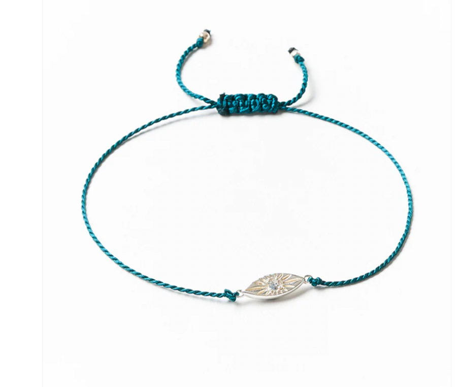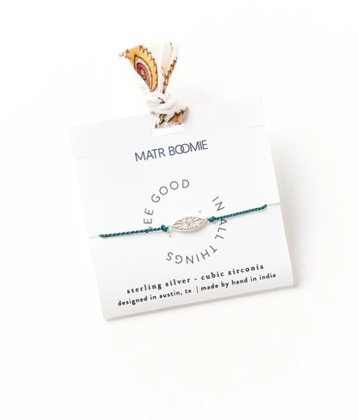 Our vibrant Jivala Charm Collection features shiny, sterling silver charms with sparkling cubic zirconia accents in well loved, intentional designs finished with silk thread cord. This handcrafted bracelet features a sterling silver evil eye protection charm with cubic zirconia accent stone, silk thread cord, and adjustable macrame closure with sterling silver bead detail. This piece will arrive on a 3" x 3" card featuring an assorted fabric tie accent and the inspirational message: "See Good in All Things."