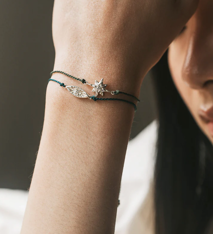 Our vibrant Jivala Charm Collection features shiny, sterling silver charms with sparkling cubic zirconia accents in well loved, intentional designs finished with silk thread cord. This handcrafted bracelet features a sterling...