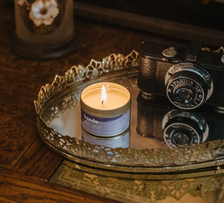 - Materials: Soy wax, natural fragrance oil, 100% cotton wick, tin container
