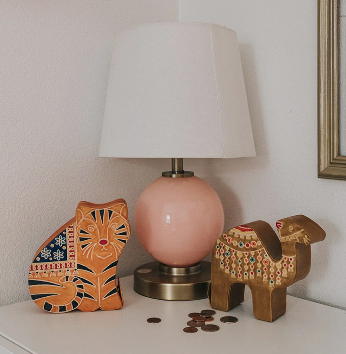 Handcrafted leather bank features a colorful design combining traditional techniques in Indian leather craft, ethically sourced, cruelty-free leather, and eco conscious vegetable tanning. The cultural arts of leather craft and leather tooling have been passed down for generations in Rajasthan, India. Intricately hand tooled detail and rich color pallet express age-old Indian design motifs.