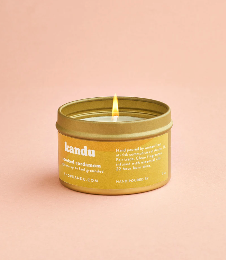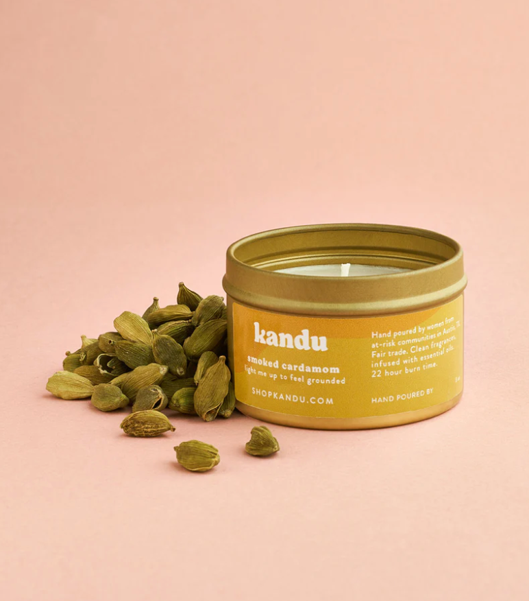 The Kandu Smoked Cardamom Candle invokes the scents of being transported to the spice markets of Marrakech. Popular in South Asian and Arabic cultures the smoky cardamom scent and soft candle glow will fill the indoor home or outdoor patio space with a warm ambience. Perfect for lighting on a self-care Sunday, winding down for the evening or when entertaining guests, creating an inviting and relaxing atmosphere. This gender neutral scent would make a versatile and effortless gift for him or her for a variety of occasions, including birthdays, housewarmings, Father's and Mother's Day. Fragrance notes: top notes of cardamom, middle notes of vanilla and spice and bottom notes of smoke and wood. Burn Time: 22 hours