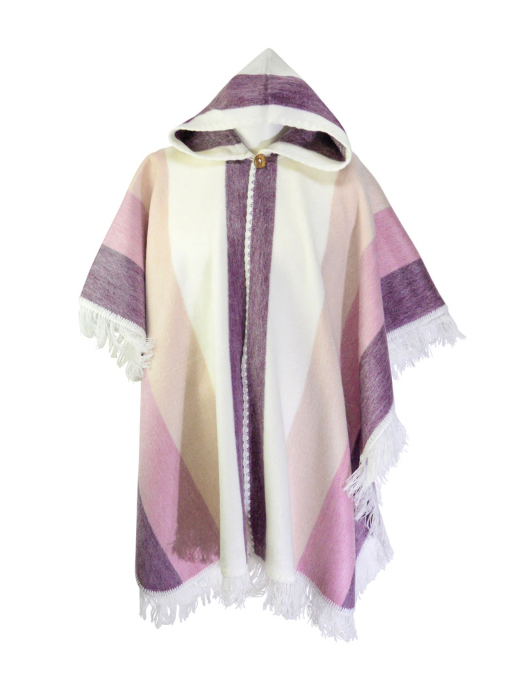 Elena Acrylic Poncho. Available in solid colors, striped, and accented with Incan designs. 100% Acrylic. Made in Ecuado