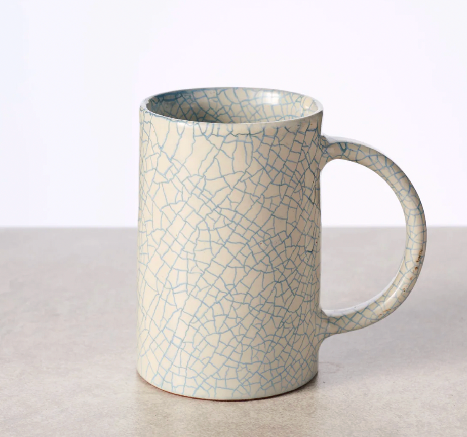 You'll want to linger over your morning coffee when you're enjoying it from this gorgeous mug! The tall ceramic design features a unique blue crackle glaze that adds a touch of sophistication to your daily dose of java. A unique and attractive kitchen essential that's sure to inspire a sense of joy with every sip! A Ten Thousand Villages Exclusive handcrafted in Nepal.