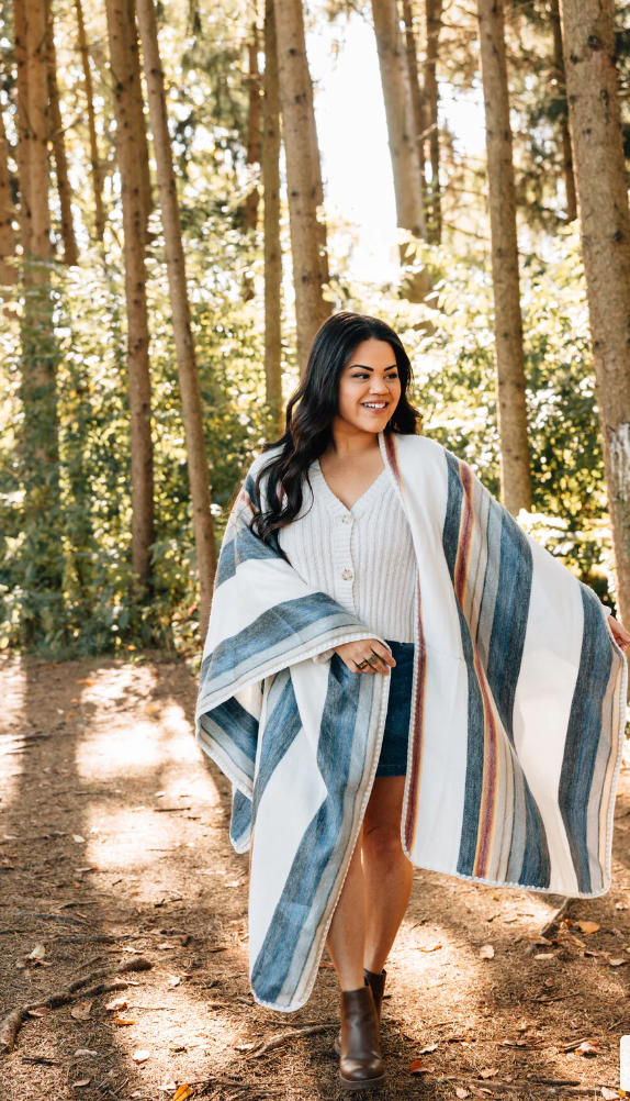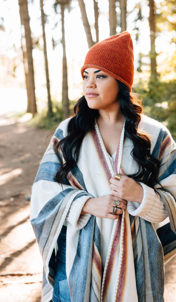 A striking layer over jeans and tall boots. Wrap up and keep warm in this reversible poncho. Handmade by makers with our artisan partner, Camari, working with makers to ensure they receive stable, fair income that enables them to carry on family traditions of working the land and preserving indigenous culture through traditional crafts.
