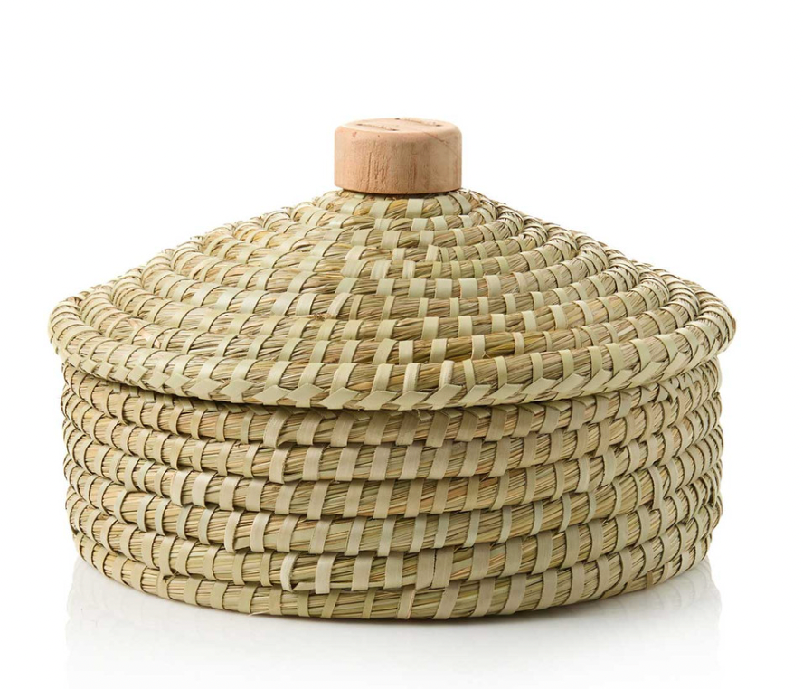 Our Lidded Pangara Breadwarmer will become the centerpiece of any gathering, beautifully holding fresh baked goods and keeping them oven fresh when wrapped in a lightweight cotton towel or napkin while also sharing your support of fair trade. You can also give this beautiful breadwarmer as a hostess gift, wedding gift, or housewarming present. Dimensions: 7"h x 11"dia