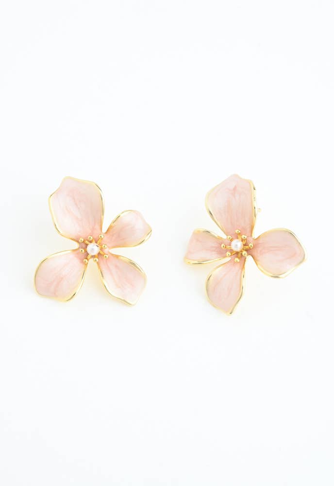 Our Hope In Bloom Earrings make an unforgettable statement you’ll want to pair with every look! Shimmering misty rose pink enamel on 14K plated gold shapes the 3D flower earring, creating a beautiful stage for the mother of pearl within. Style yours with a gorgeous formal look or with your weekend vibes tee and shorts. As you wear and gift our Hope In Bloom Earrings, celebrate the power of hope you share with the survivors beginning a new life of freedom at Starfish Project. May this hope bloom in every season! Box size and color may vary. Materials: 14K Gold plated brass with enamel earrings Hypoalle rgenic; lead and cadmium free with nickel content less than 100 ppm. Size: 1.14 inches