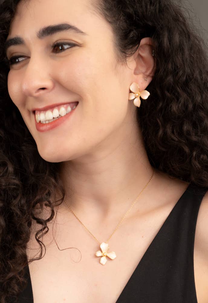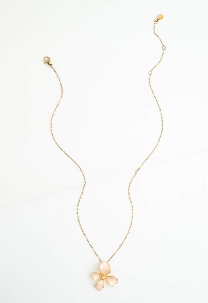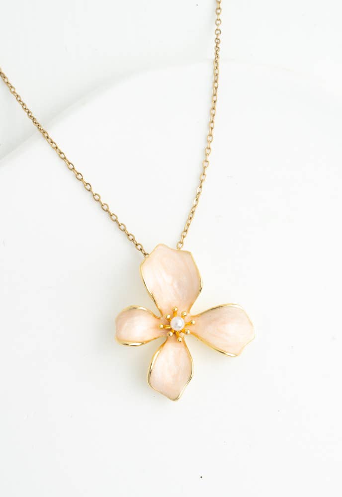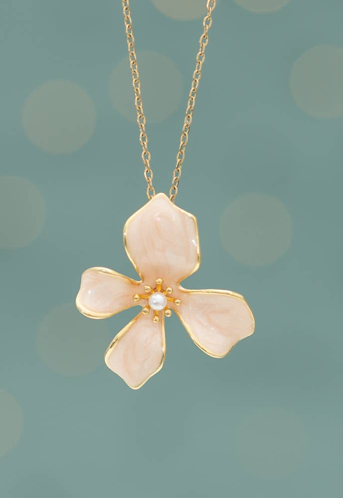 Our Hope in Bloom Necklace makes an unforgettable statement you’ll want to pair with every look! Shimmering misty rose pink enamel on 14K plated gold shapes the 3D flower pendant, creating a beautiful stage for the freshwater pearl within. Style yours with a gorgeous formal look or your weekend vibes tee and shorts. As you wear and gift our adjustable Hope in Bloom Necklace, celebrate the power of hope you share with the survivors beginning a new life of freedom at Starfish Project. May this hope bloom in every season! Box size and color may vary. Materials: 14k gold plated stainless steel chain with enamel flower necklace Hypoallergenic; lead and cadmium free with nickel content less than 100 ppm. Size: 16-18 inches