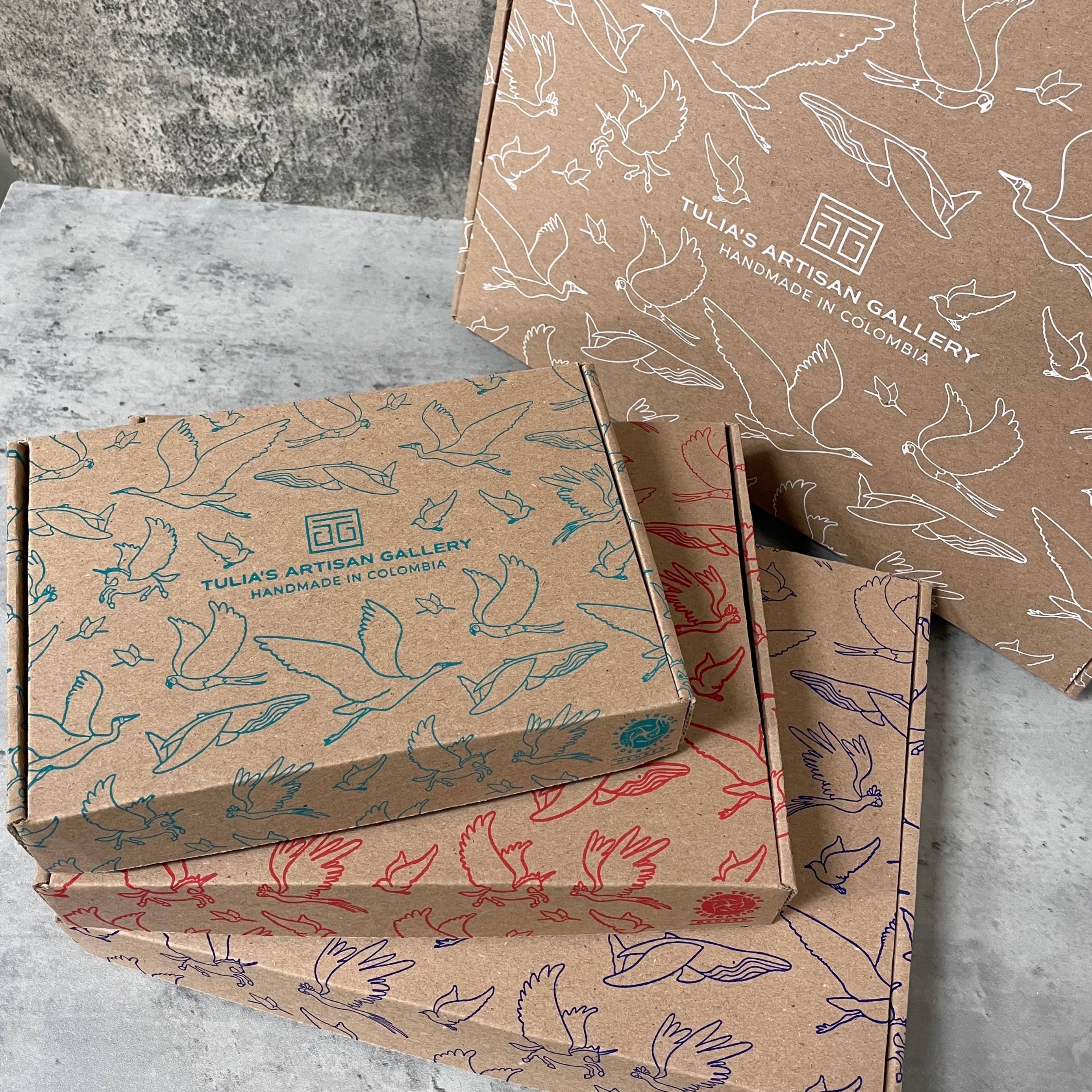 These mobiles are perfectly balanced for the most graceful movement. Pull and release the bottom string and watch them fly. Each is constructed of medium-density fiberboard, hand-painted with non-toxic acrylic paint, and decorated with dyed tagua nuts. Best enjoyed indoors in any room of the house. If hung outside, keep dry. These whimsical flyers are handcrafted by a woman-owned business in Colombia and packaged in custom-printed mailer boxes by another woman-owned business in Chicago. Wingspan: 9in.
