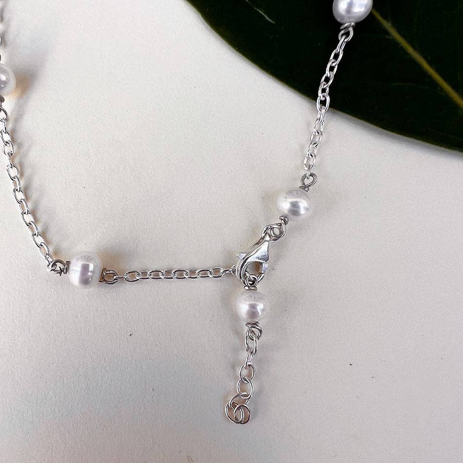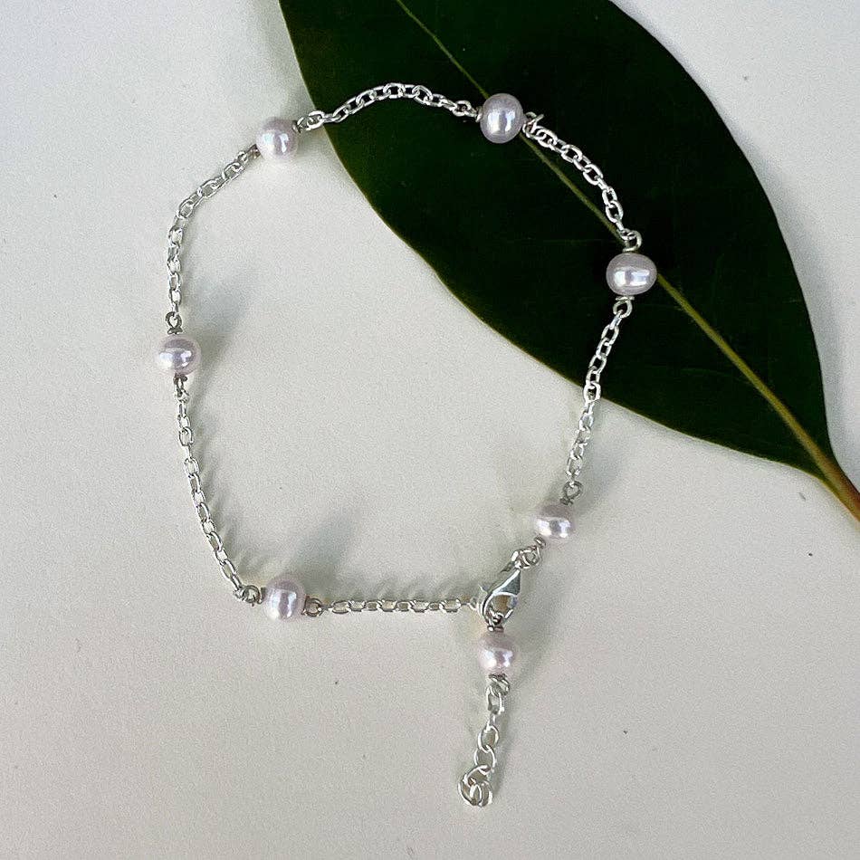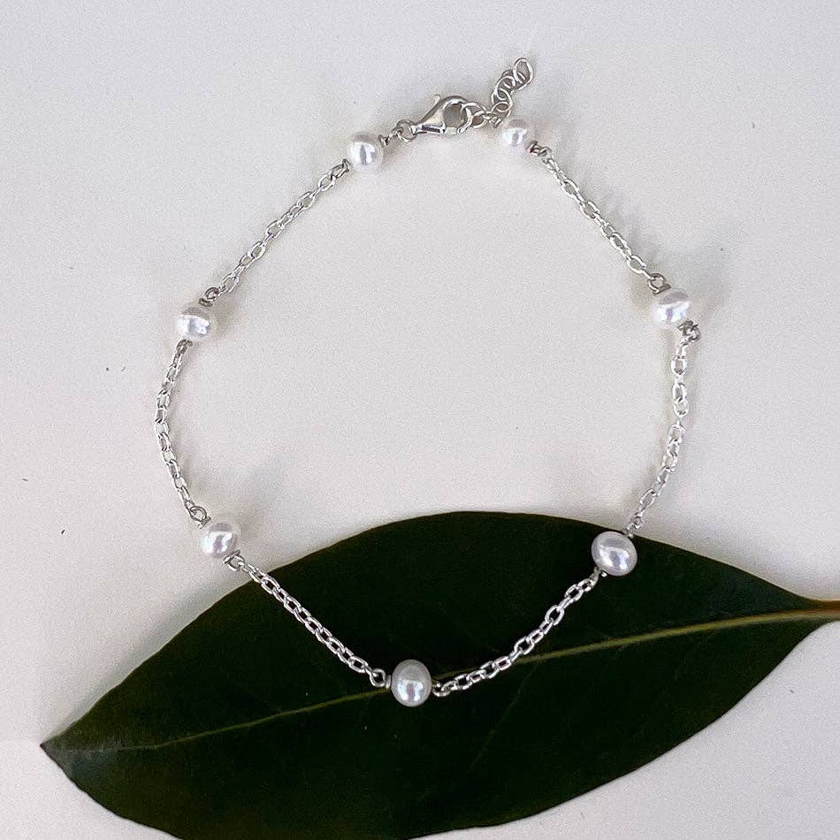 Women's Peace Collection - Delicate Pearl Chain Bracelet - Sterling Silver, Indonesia