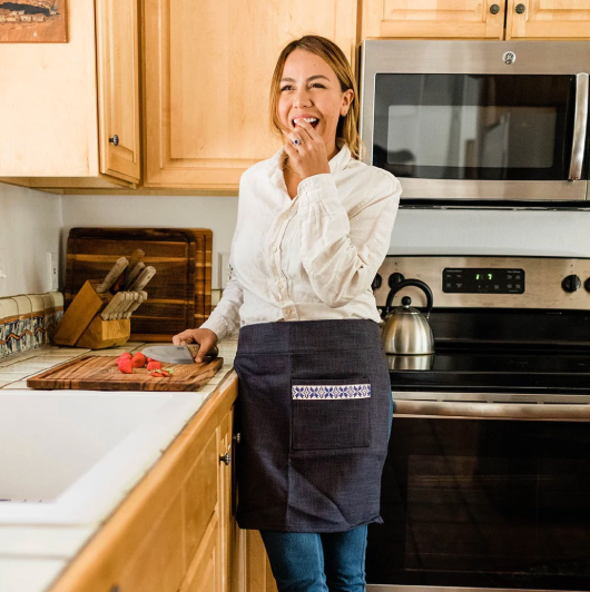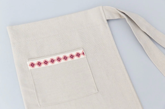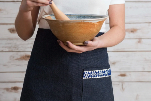The Farah Tatreez Apron is your next favorite kitchen accessory. The apron is the ideal kitchen companion that will add style to any cooking routine. The Navy Apron features the “Sea” (Bahar in Arabic) tatreez motif, while the Cream Apron is adorned with the “Diamond” (Almas in Arabic) motif.
