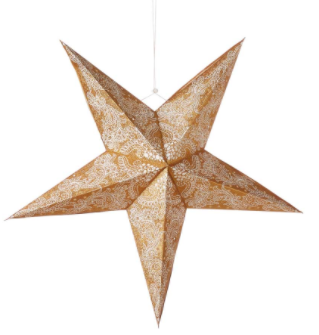 Light glows warmly through small holes within the glittering, golden swirl design of this hanging paper lantern. Three-dimensional when opened, folds up flat. Light cord kit not included. 24"dia.