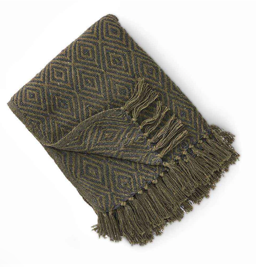 The ultimate in sustainable comfort, this remarkable cotton throw is made from recycled clothing, which is separated and spun into new threads. The threads are then over-dyed and re-woven to create a cozy, lightweight throw. Varied woven patterns. Knotted fringe ends. Machine wash. 60% cotton, 40% mix of polyester, viscose and rayon. Comes neatly wrapped with a band printed in India. Dimensions: 60"l x 50"w