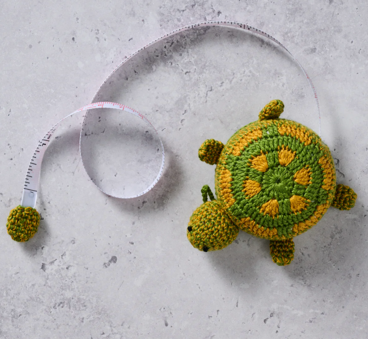 This uniquely adorable measuring tape takes an ordinary household staple and turns it into a fun tool you will look forward to using! The sweet, crocheted turtle design with soft 3D head, arms and legs will make you smile each and every time you pull out this handy measuring tape. Handcrafted in Vietnam.