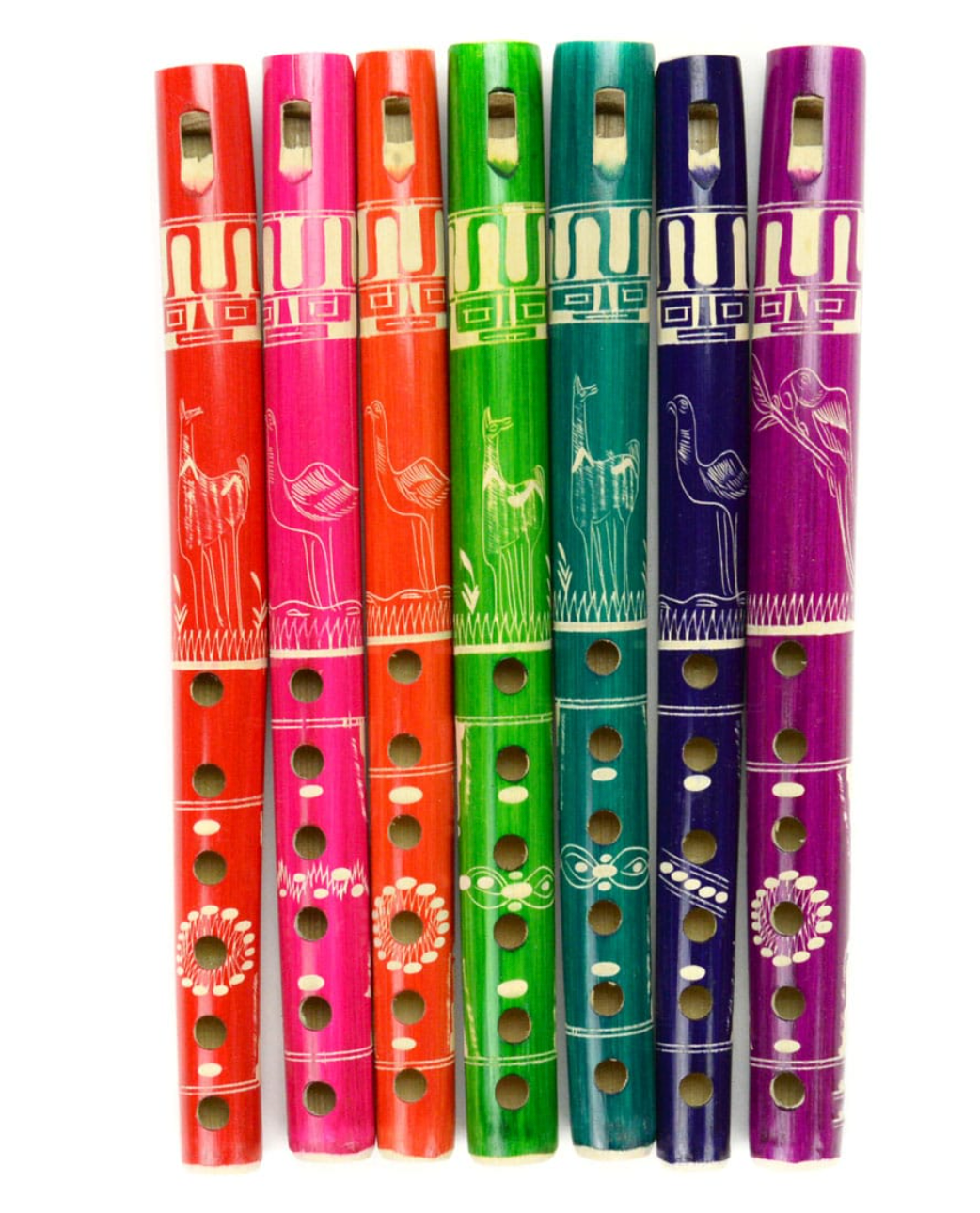 Carved out of bamboo and available in every color of the rainbow. Sold individually. Made in Perú. Please inquire about current color selection.