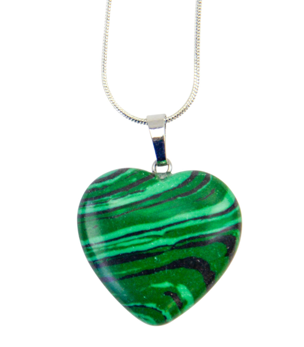 A lovely and simple heart necklace carved from semi-precious stone. Comes in various stones. 20". Made in Perú.