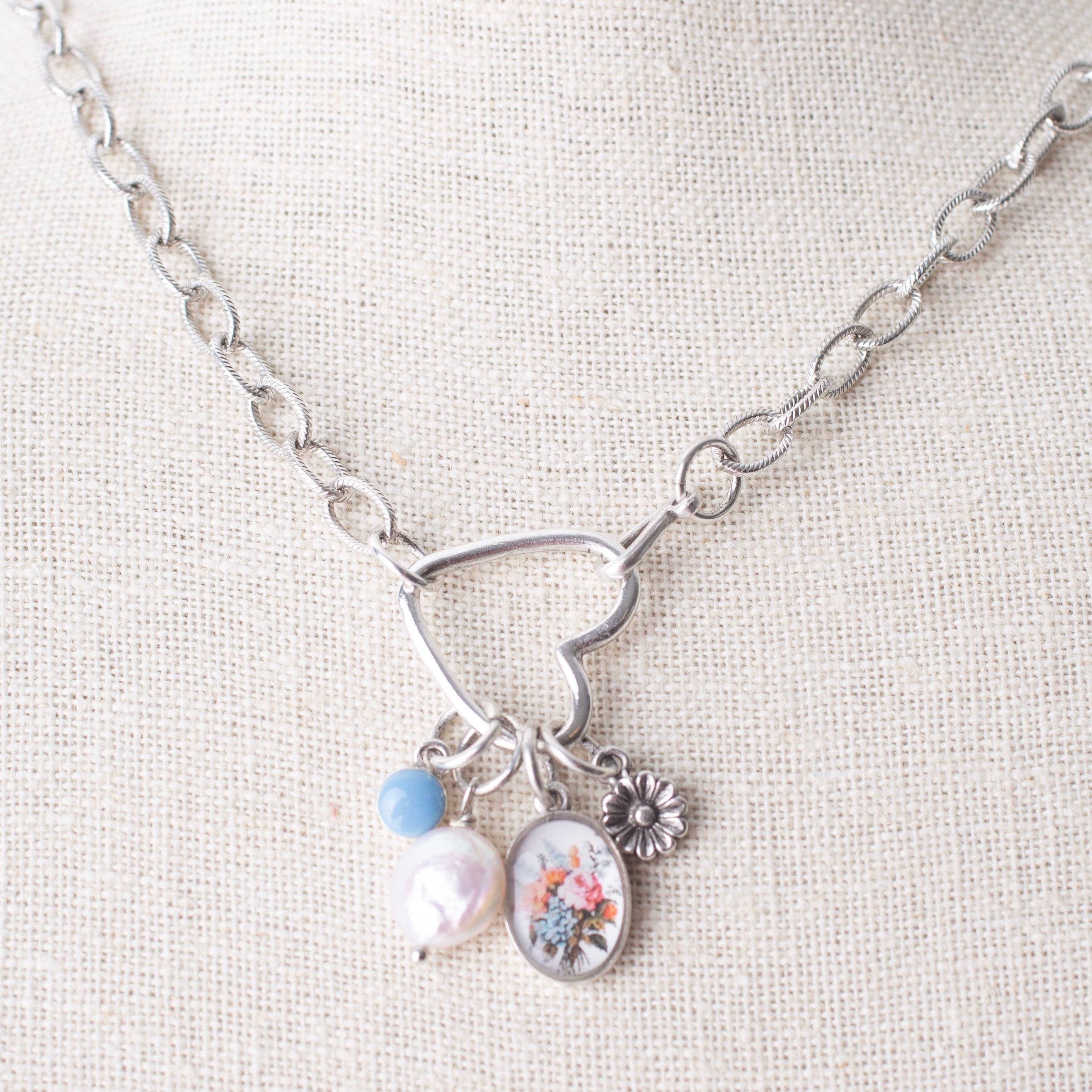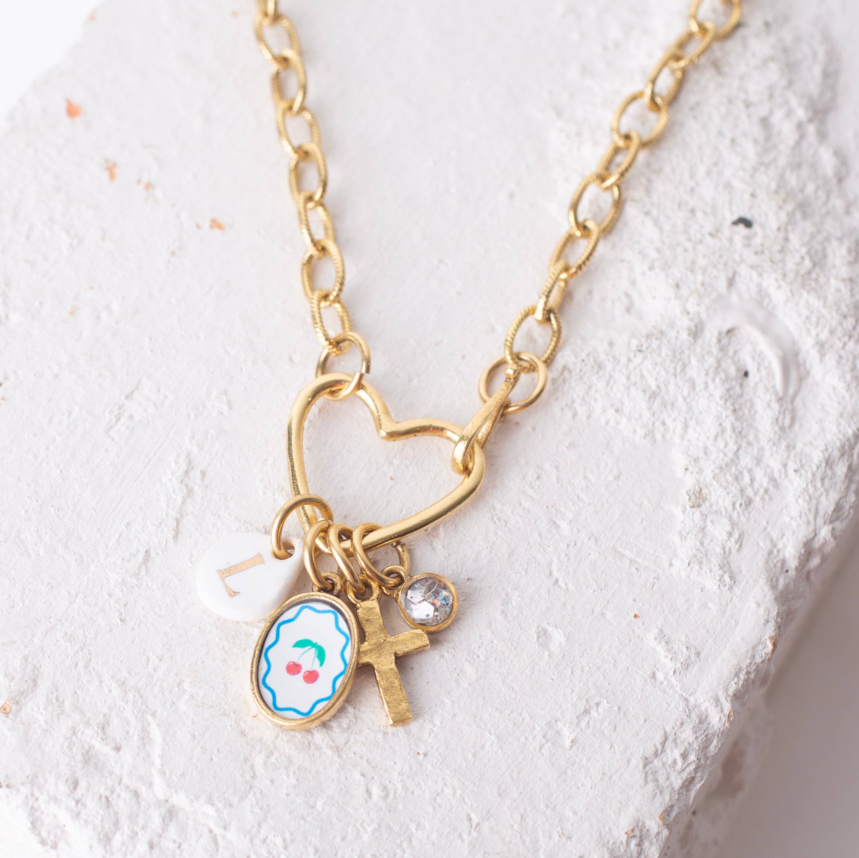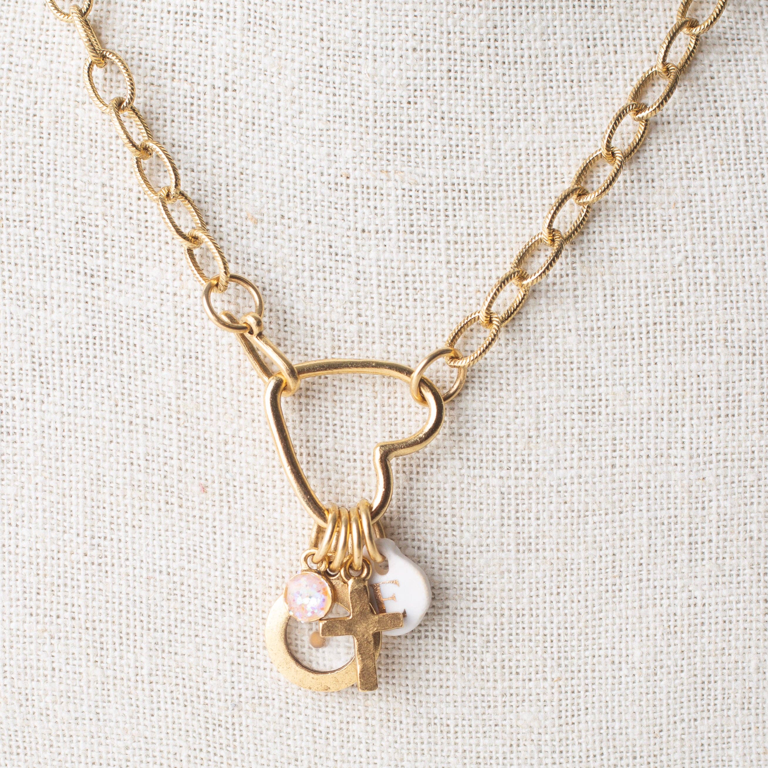 * Handmade in the United States, Assembled in the Dominican Republic * Brass Base Metal Chain with an Antiqued .999 Fine Silver Plate or 24K Gold * Finished with a whimsical hook and heart connector * 18" Length * Can be adjustable!