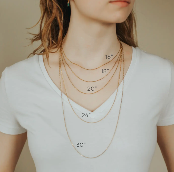 Materials handmade in the United States, Assembled in the Dominican Republic * Brass Base Metal Chain with an Antiqued .999 Fine Silver Plate or 24K Gold * Finished with a Lobster Clasp * Choose from 16", 18", 20", 24", and 30" lengths