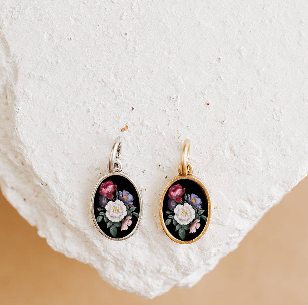 Our Vivianne charm is made by hand, encasing & sealing an original image in layers of resin. Our collection is co-created by our team in Indiana and women in the Dominican Republic, empowering them to break the cycle of poverty in their communities by offering a holistic approach to training, offering each woman counseling, language tutoring, and supporting women as they become entrepreneurs. The charm width is .5"
