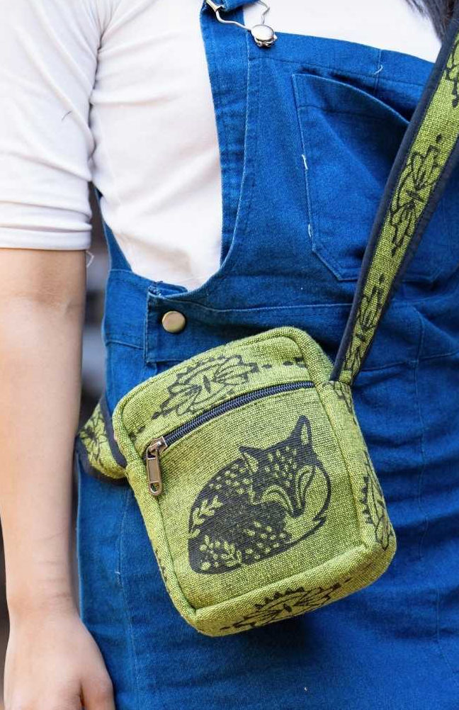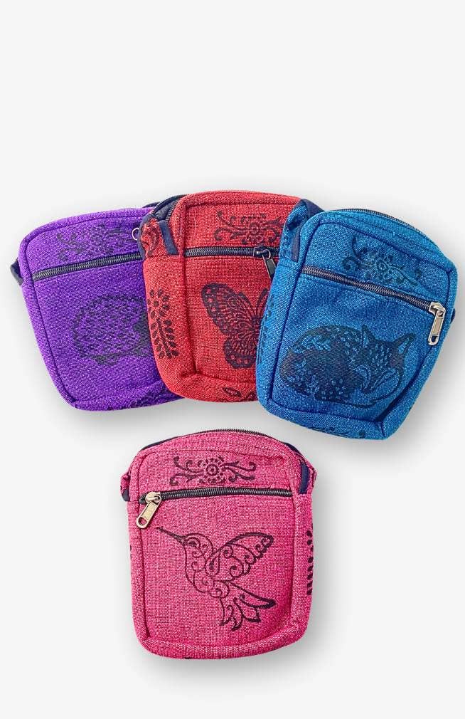 Small blockprint cotton camera bag with belt loop & adjustable strap, 5.5″ tall x 4.5″ wide x 1.5″ deep. This small cotton camera bag is the perfect size for those who like to carry the bare minimum. It will easily fit a phone, camera, keys, credit cards & a few other essentials. Throw it over your shoulder or attach it to your belt and you are ready to go. Front zip pocket & top zip closure. By purchasing this bag, you are helping to preserve the traditional blockprint art form which has been practiced in nepal for thousands of years. Assorted blockprint designs & colors. Some of the blockprint designs may include: birds, foxes, butterflies, horses, goats, cats, fish, whales, dogs, pineapple, fruit, hearts & geometric.