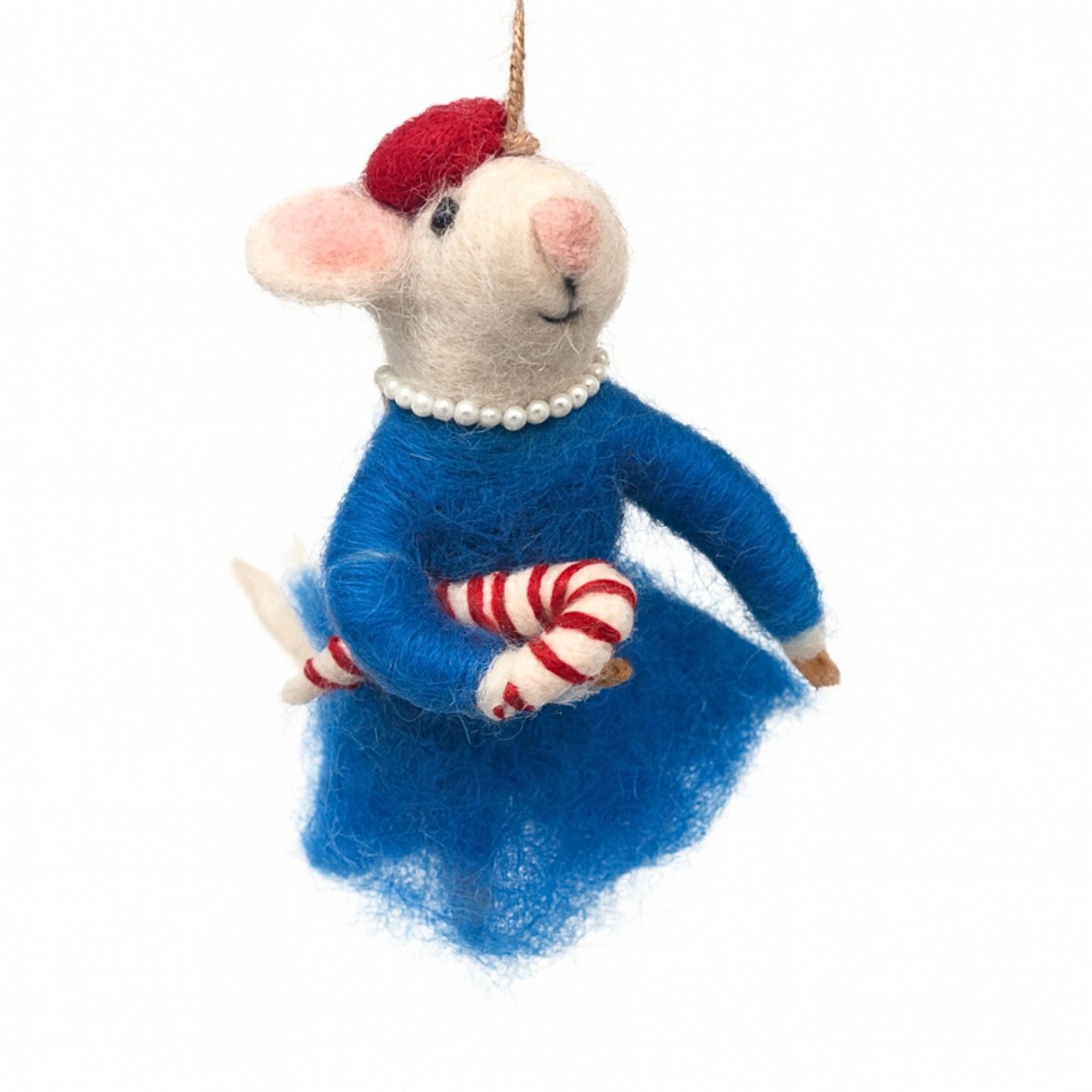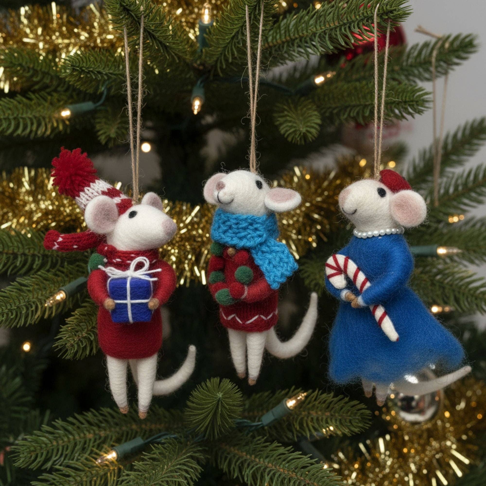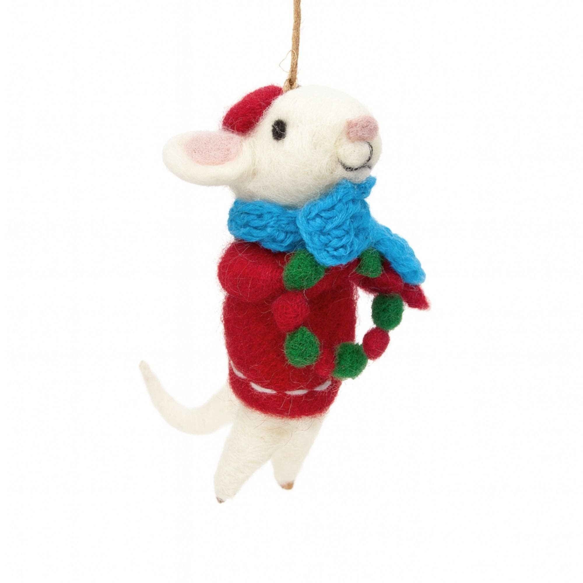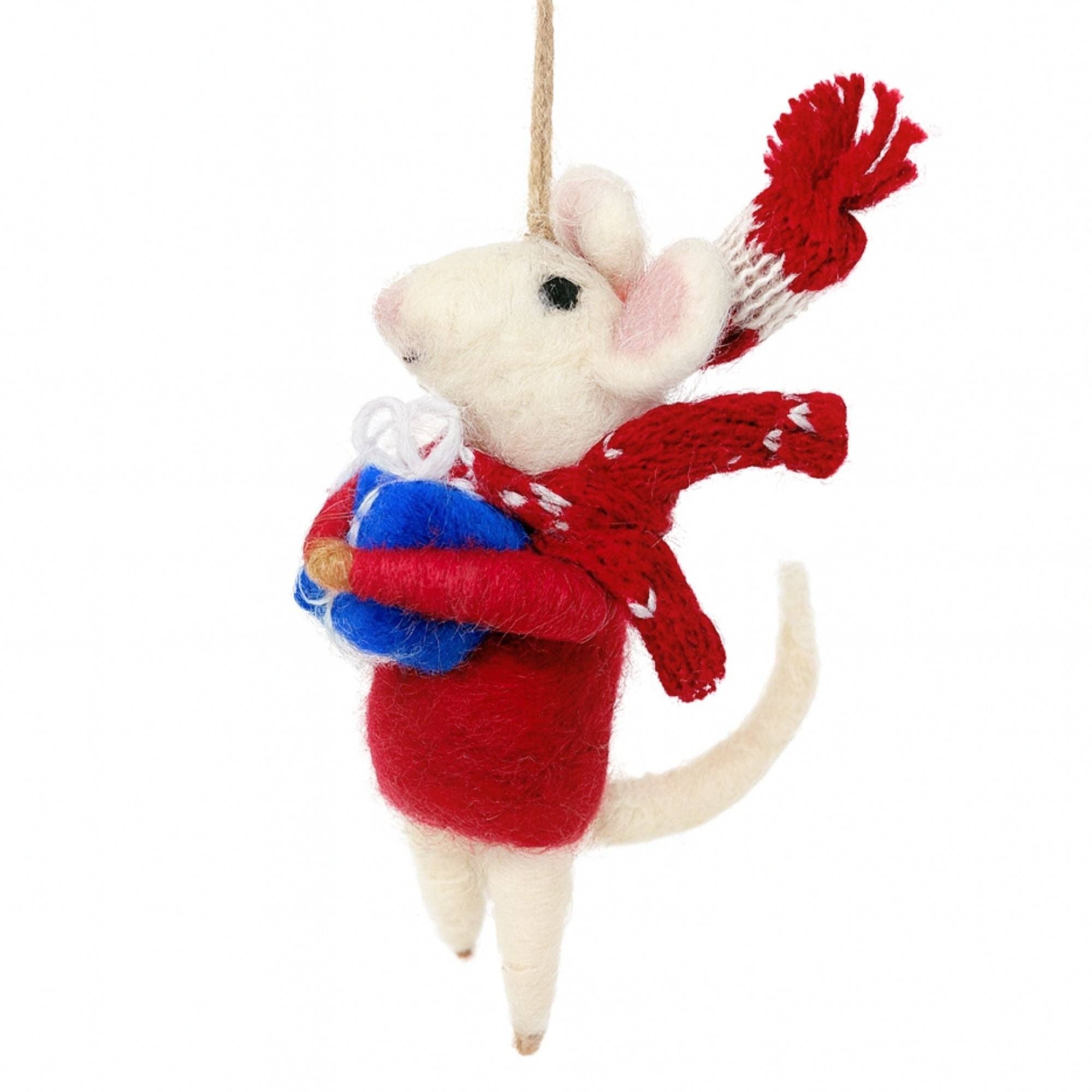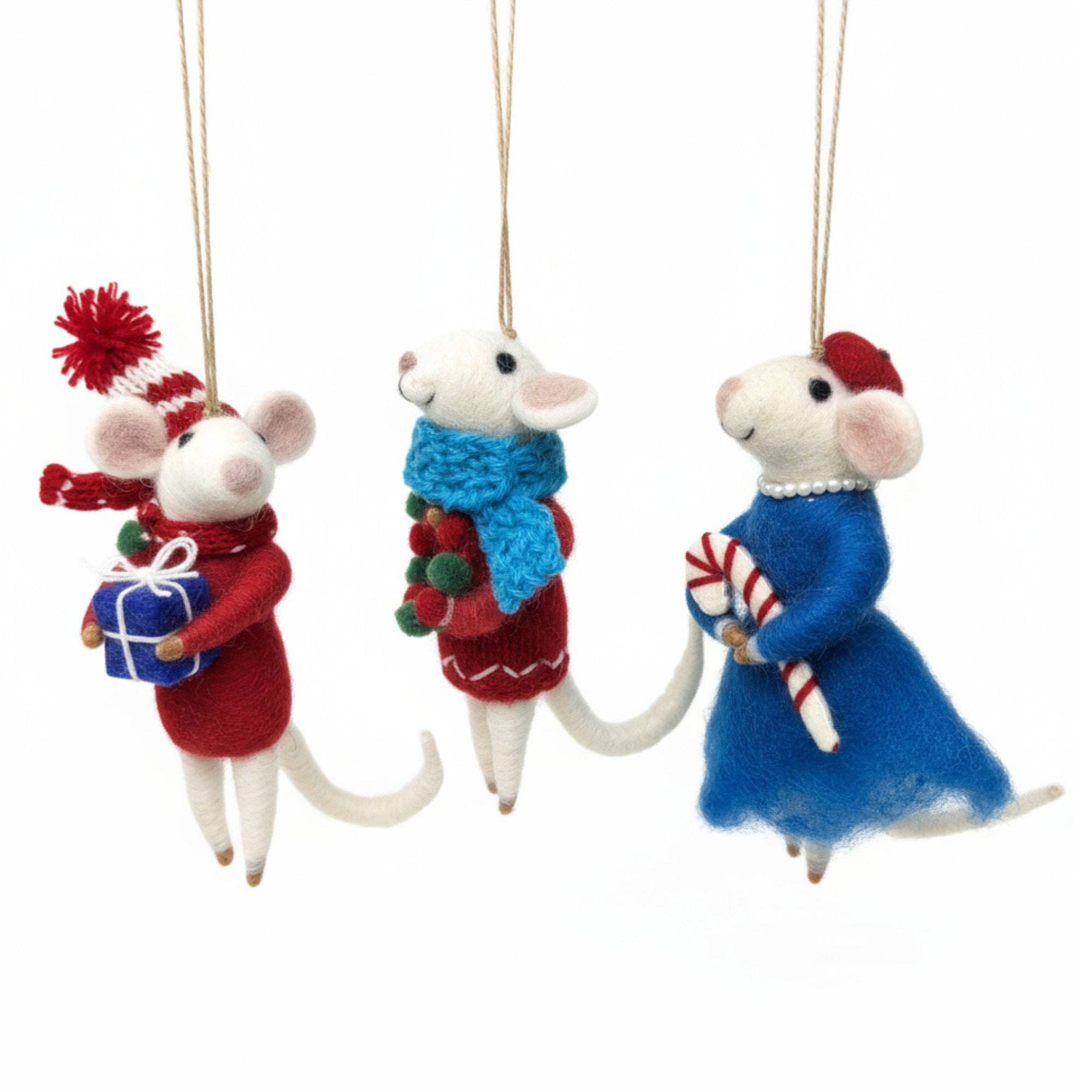 These are sure to be collectibles. Each mouse is bearing a Christmas tiding of a wreath, gift or candy cane. Each is intricately detailed with fine touches in the features and clothing. Lovingly crafted by mother and sister artisans in Nepal. * Eco-friendly wool felt. * Each character measures approximately 4 inches tall. * Azo-free dyes. * Fair Trade. The Art of Felting: The first step to creating these beautiful felt pieces begins with gathering some of the world’s finest sheep’s wool from New Zealand. Making felted wool is an ages-old, time-consuming process of bonding fabric with fiber. Sold Individually.