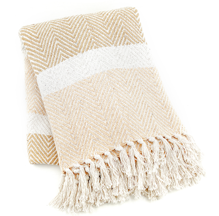 The ultimate in sustainable comfort, this remarkable cotton throw is made from recycled clothing, which is separated and spun by hand into new threads. The threads are then overdyed and re-woven on jacquard looms to create soft, lightweight throws. Two-color throw is woven with herringbone pattern. Knotted fringe ends. Machine wash. 60"l x 50"w