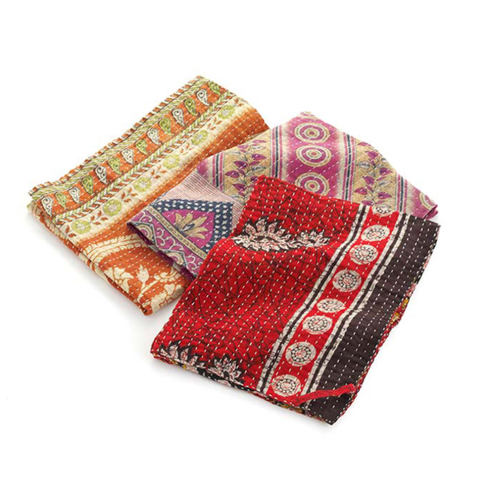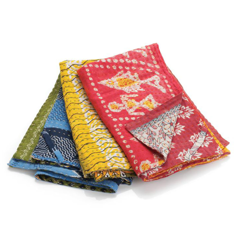 Double-layer linens made from recycled cotton saris come in an array of traditional Indian patterns and colors. Towels are finished with traditional kantha embroidery, and small hanging loops. Colors may vary-Let...