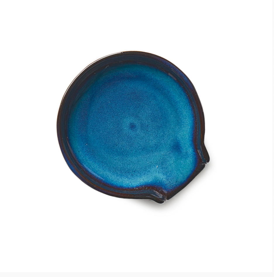 Glazed in colors that reflect the shores and depths of the lakes of Vietnam, this spoon rest offers a bold and beautiful look to any kitchen. Made in Bat Trang village, famous for its centuries-old tradition of creating fine ceramics. Dishwasher/microwave safe. Due to handmade nature and reactive glaze, coloration and pattern varies.