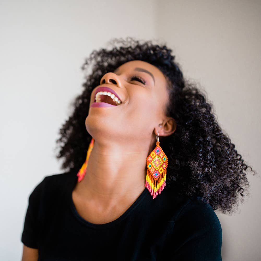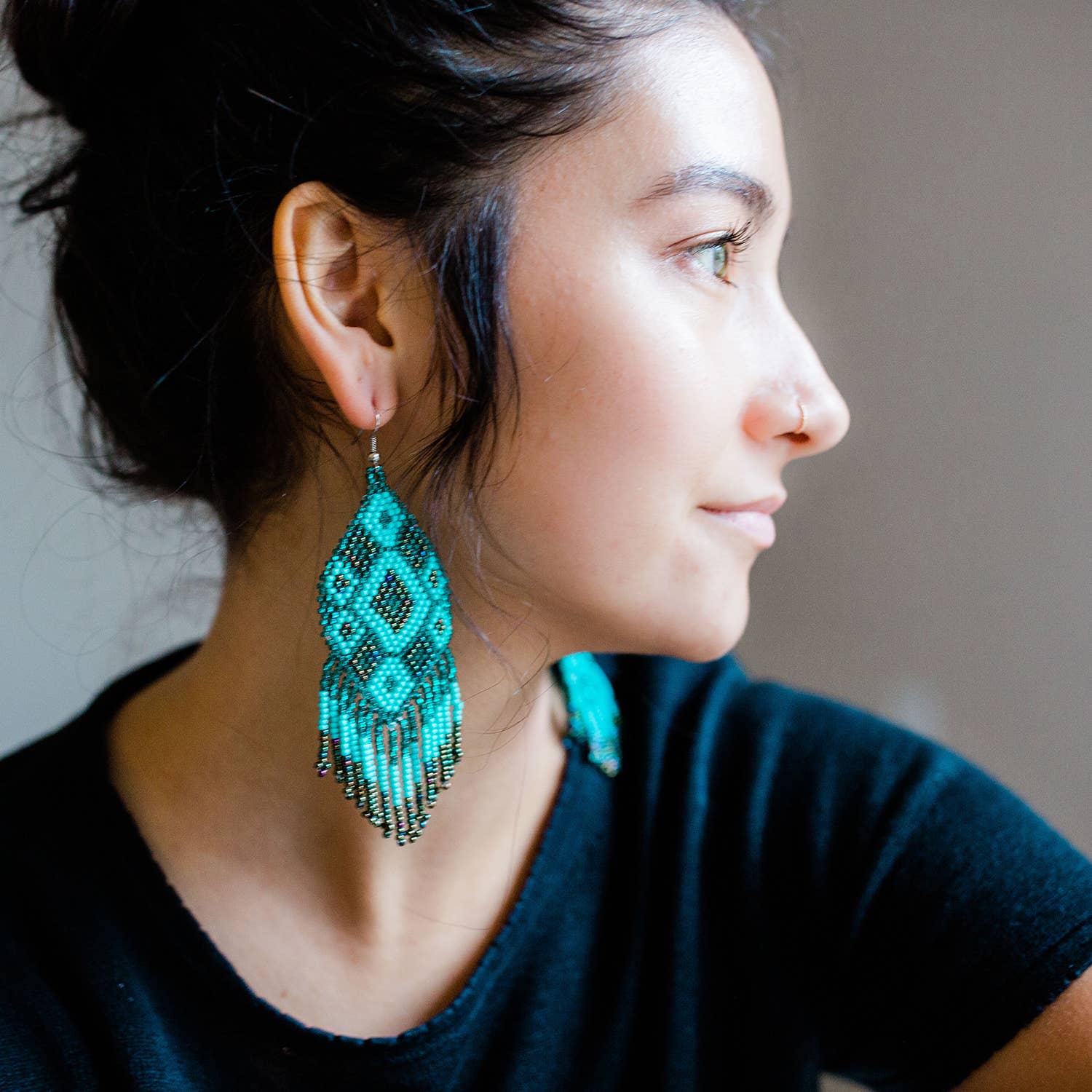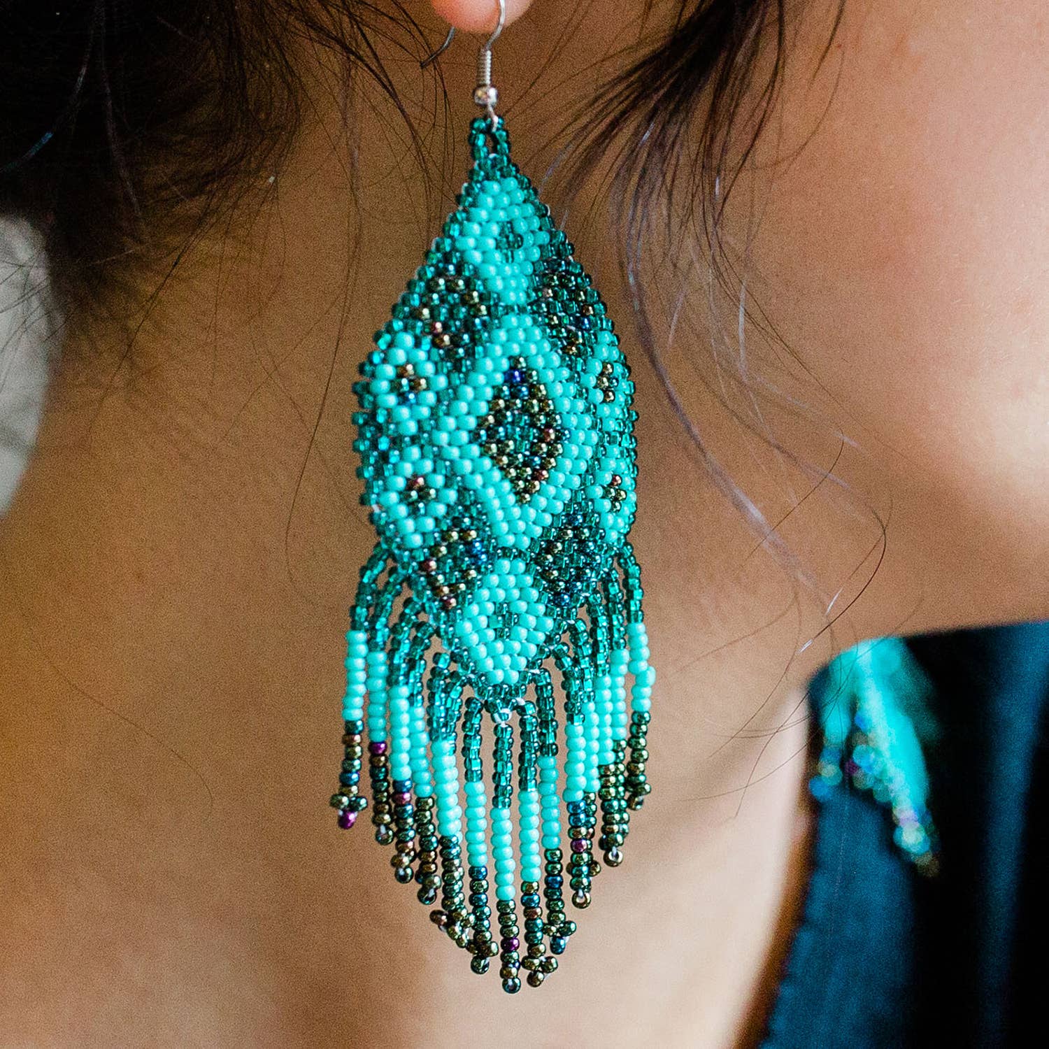 Make a statement with these beautiful earrings! These fair trade beaded Kite Earrings are made from glass seed beads and woven into fun patterns. They measure 1.5" w x 3.5" l and come in assorted colors. Each purchase empowers Guatemalan artisans.