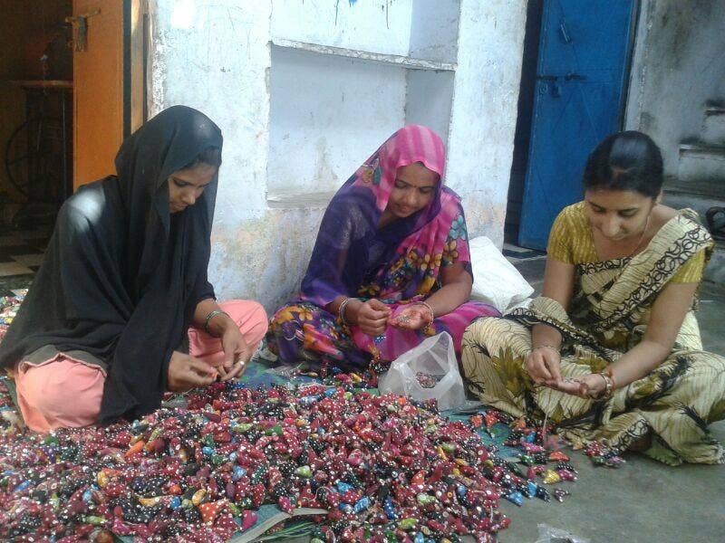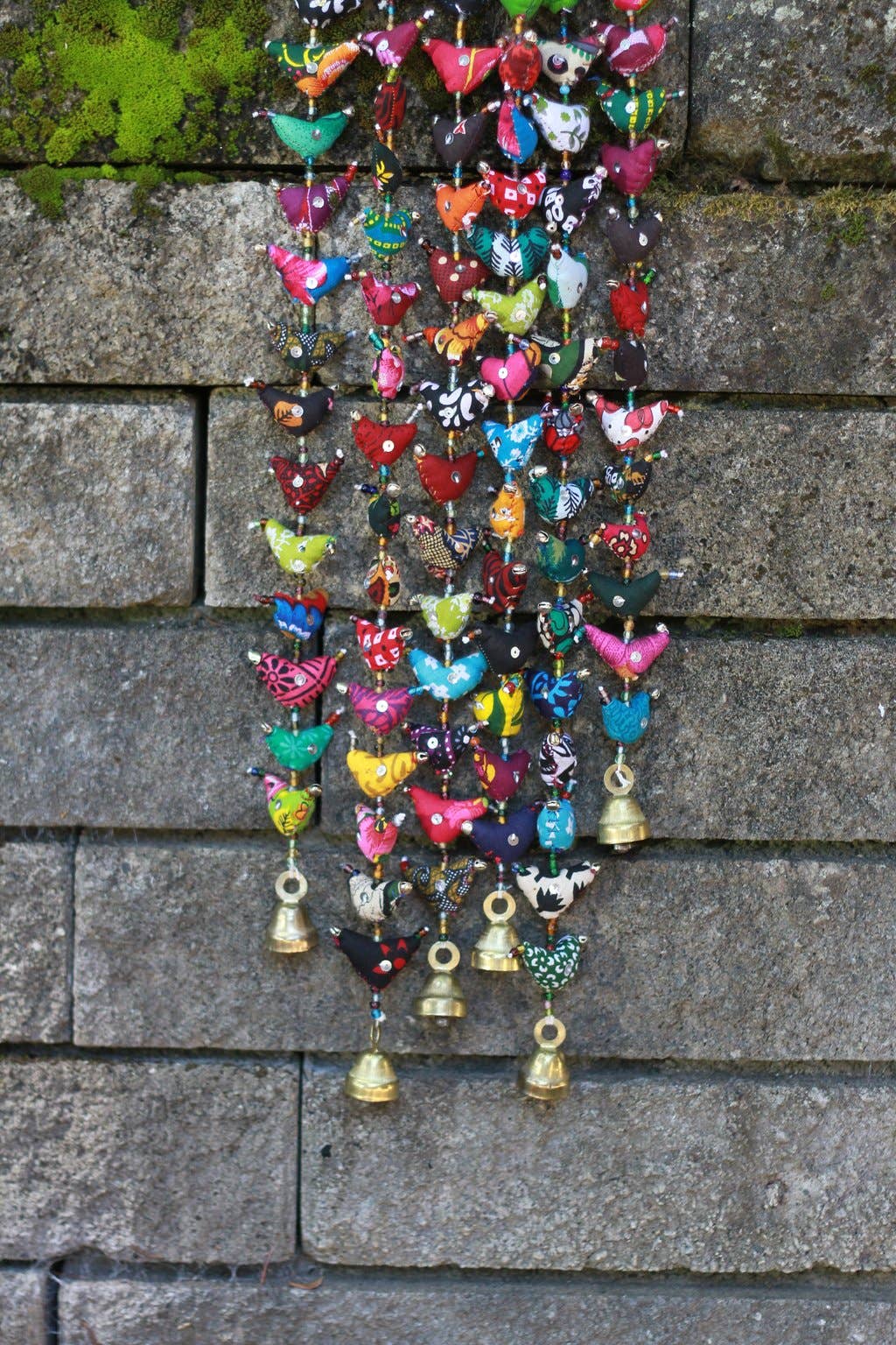 Prosperity Totas are hand stitched, stuffed, beaded and strung together by women artisans in the small village of Chota Narena, in northern India. As their name suggests and belief has it, totas bring prosperity and good luck when hung in a doorway or window. These traditional art pieces have been a symbol in Indian homes for generations.