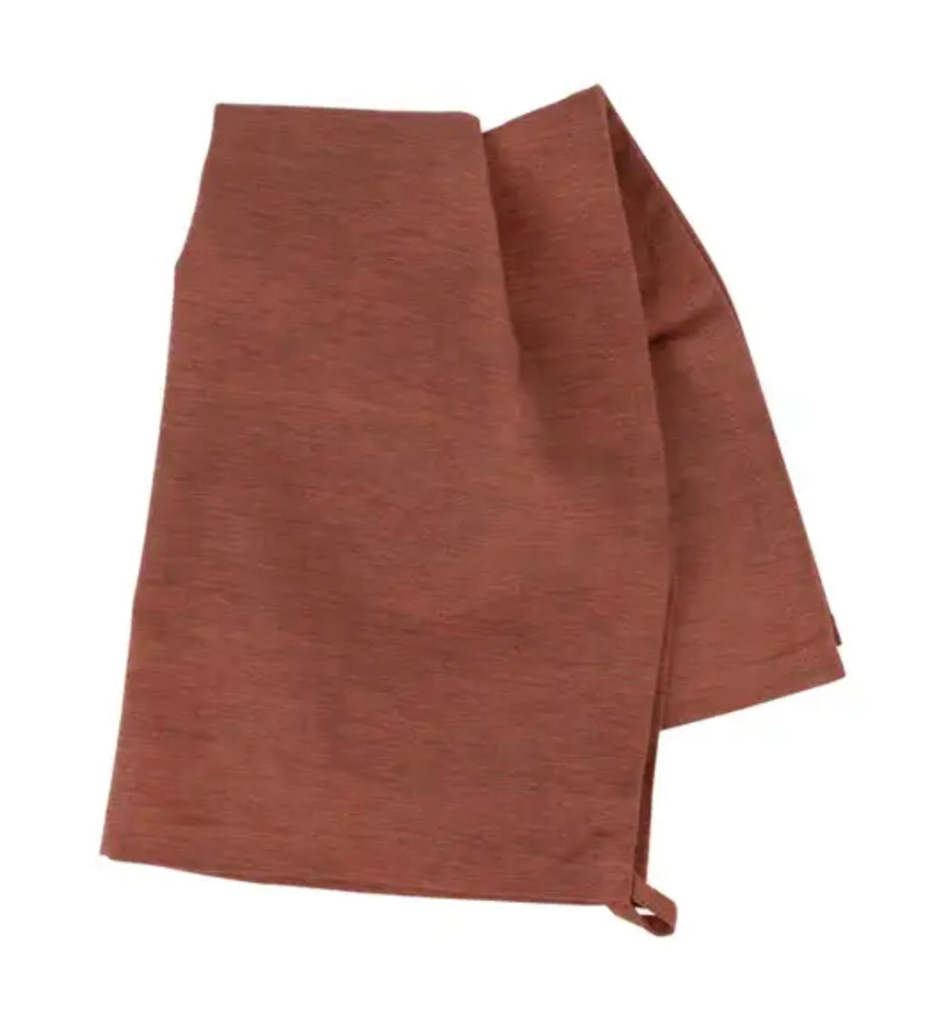 - Red/brown hand‒loomed cotton tea towel