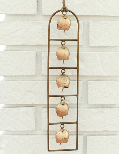 The Rustic Bells Ladder Wall Hanging, Wind Chime can be hung indoors or in an outdoor area where you want to create a peaceful sanctuary with soothing sights and sounds. Thoughtfully handcrafted by artisan makers in India who use traditional techniques and apply them to contemporary designs to create one-of-a-kind treasures for the home or garden patio area. Purchases support the livelihoods of makers from marginalized rural communities, providing them with fair wages, equitable labor practices and access to educational and training resources.
