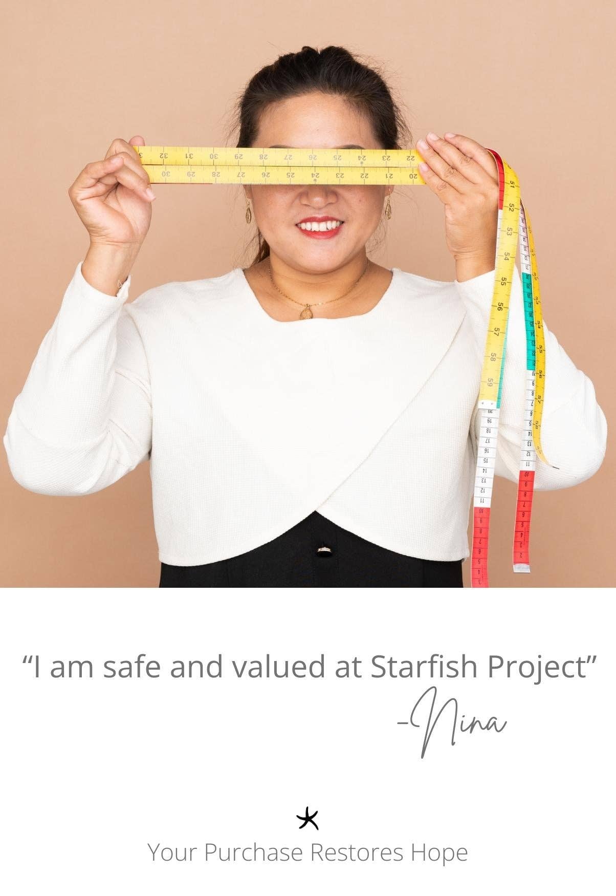 The Brilliance Star Huggies from Starfish Project, a brand synonymous with hope and empowerment. These earrings are not just a beautiful accessory, they are a symbol of transformation and resilience. Each pair is meticulously crafted by women who have been given life-changing opportunities through our holistic care programs. By choosing Starfish Project, you're supporting a brand committed to restoring hope to exploited women. Our fair trade certification is a testament to our dedication to ethical practices. Wear them, knowing your purchase makes a difference.
