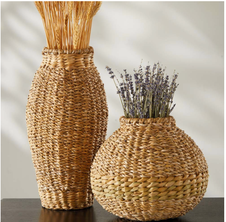 This tall, sturdy vase will look good with any aesthetic. Made of natural hogla rope and leaves, bringing instant rustic charm to your home. Great for faux floral arrangements - pair...
