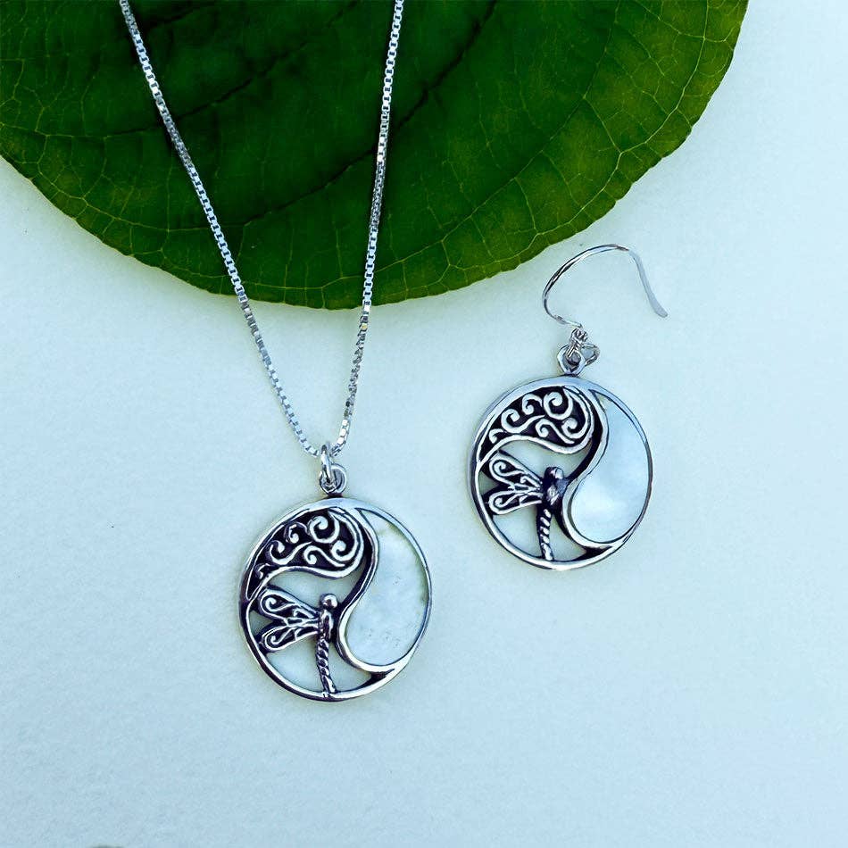 Women's Peace Collection - Mother-of-Pearl Dragonfly Circle Earrings - Sterling Silver, Indonesia